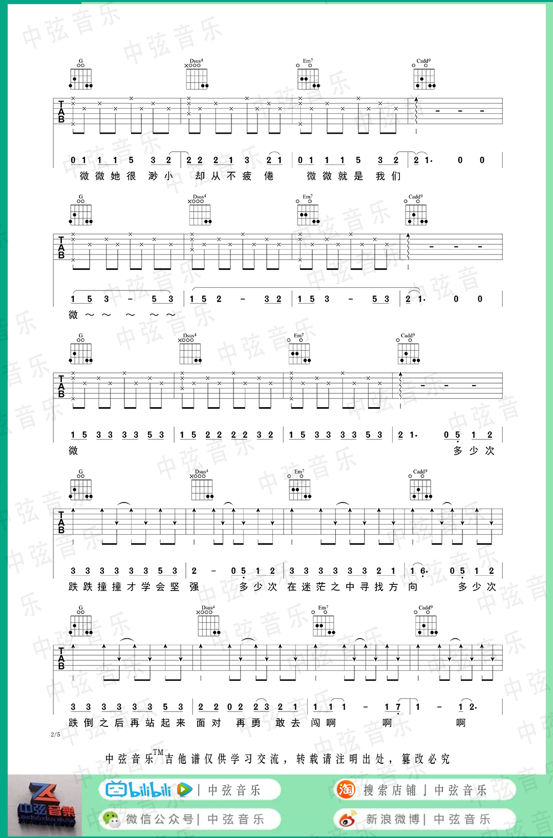 以上就是4/4节拍G调版的微微弹唱简谱完整内容,希望这个简单六线高清图片教学谱能帮到您,也希望您能收藏本站,这里每天源源不断更新各种简单入门曲谱。
