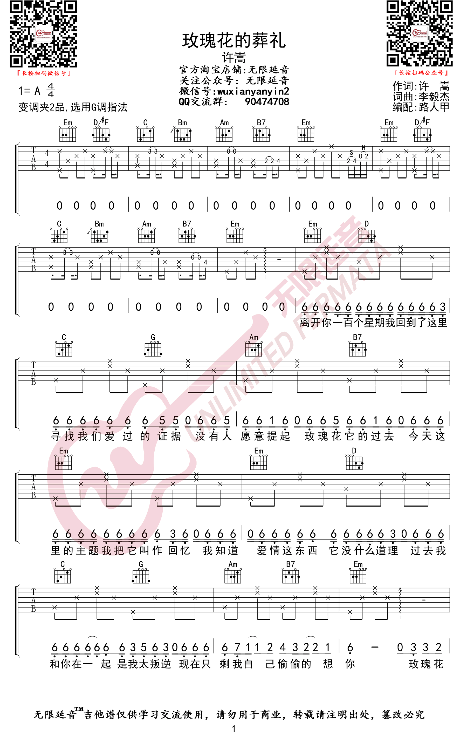《玫瑰花的葬礼吉他谱》_许嵩_G调 图一