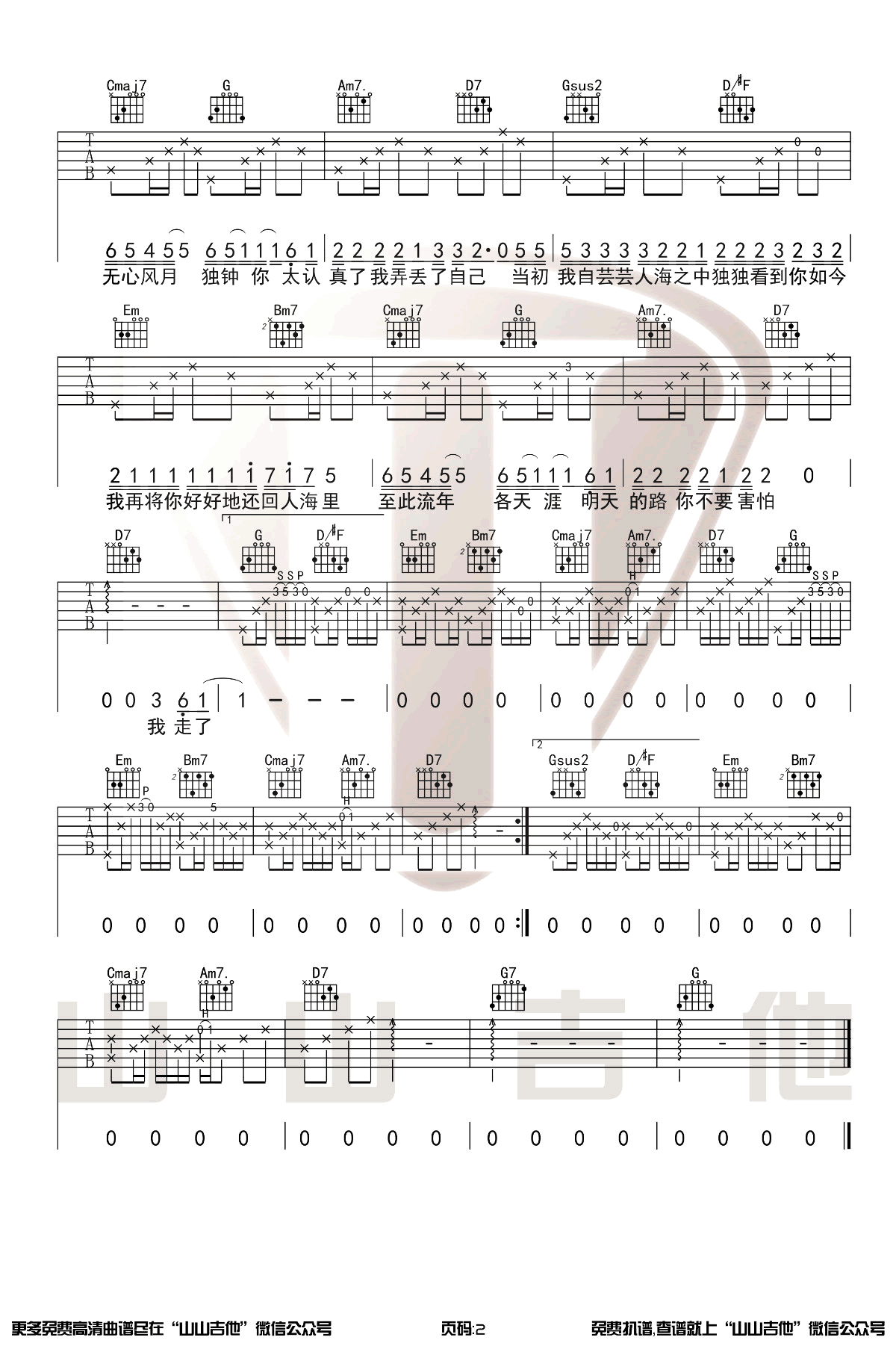 《至此流年各天涯吉他谱》_我不李志_G调 图二