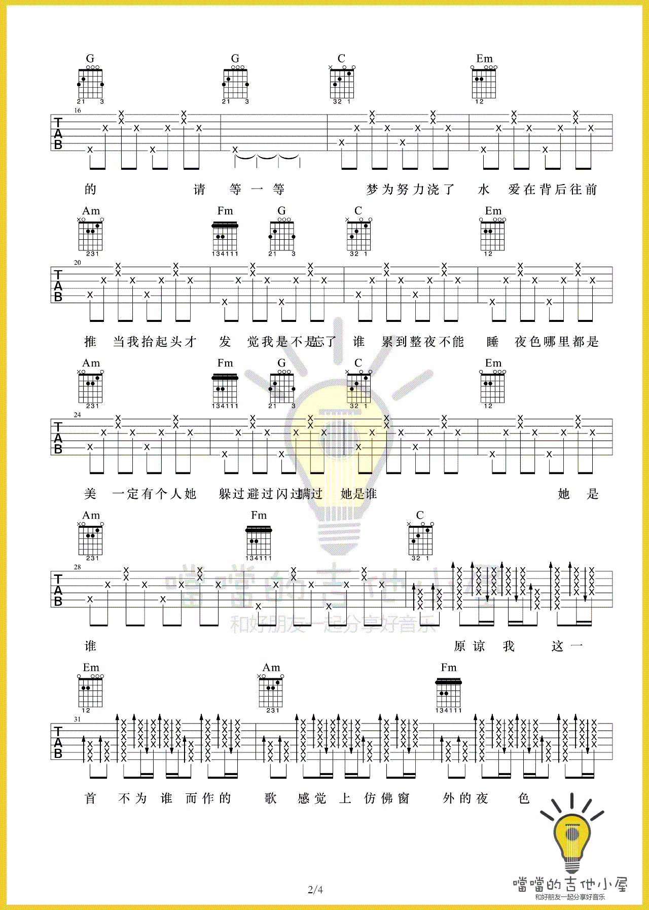 不为谁而作的歌吉他谱,原版歌曲,简单C调弹唱教学,六线谱指弹简谱4张图