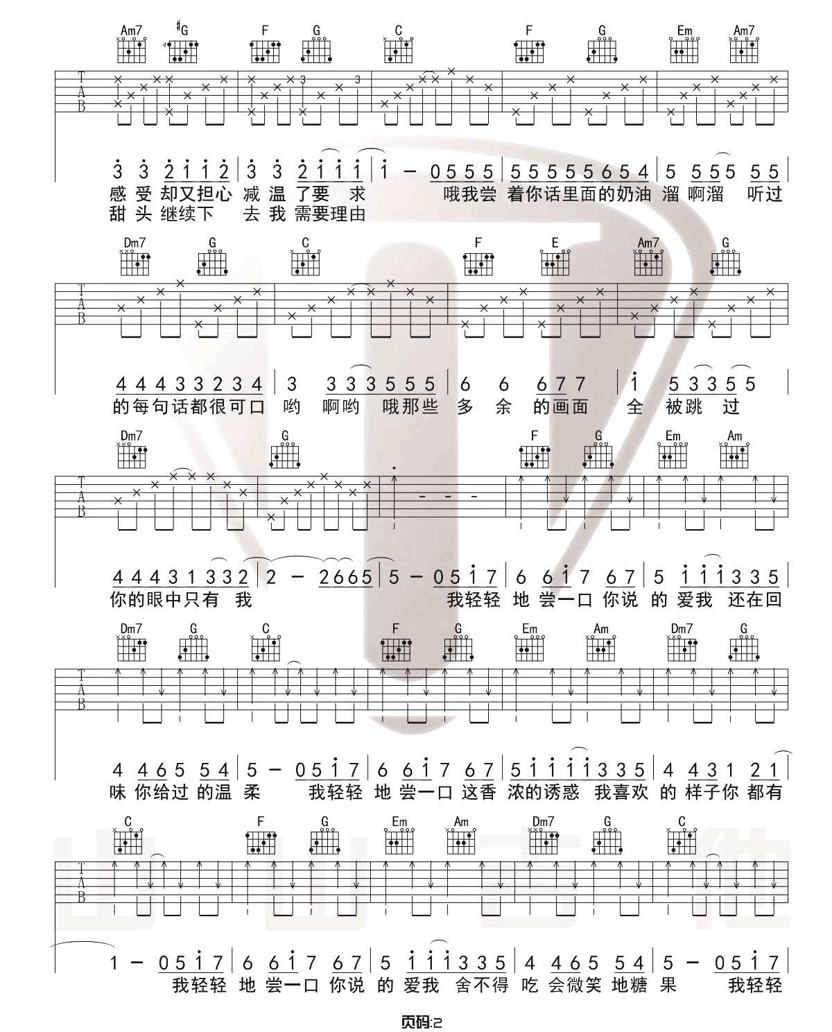 《甜甜的吉他谱》_周杰伦_C调 图二