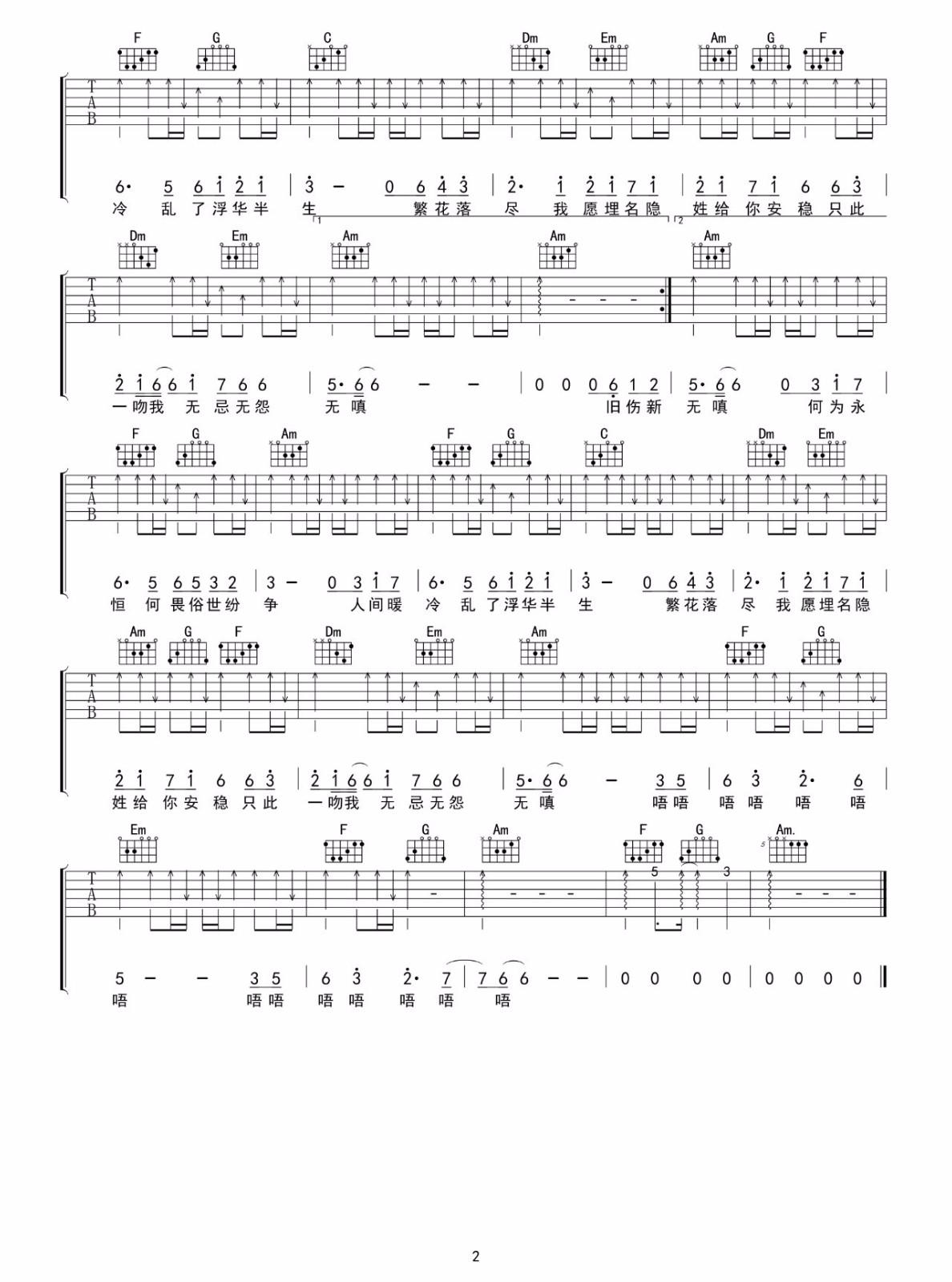《何为永恒吉他谱》_胡夏_C调 图二