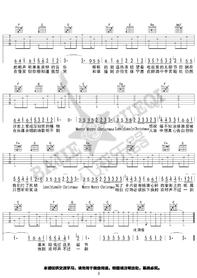 圣诞结吉他谱,原版歌曲,简单C调弹唱教学,六线谱指弹简谱3张图