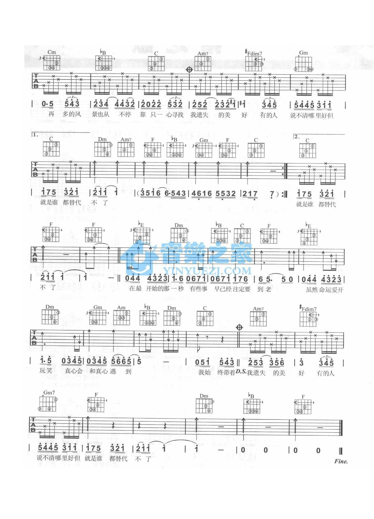 遗失的美好吉他谱,原版歌曲,简单F调弹唱教学,六线谱指弹简谱2张图