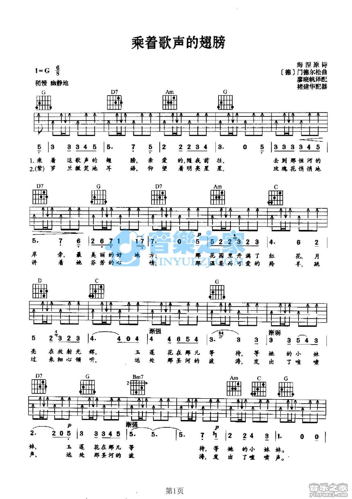 《乘着歌声的翅膀吉他谱》_门德尔松_G调 图一