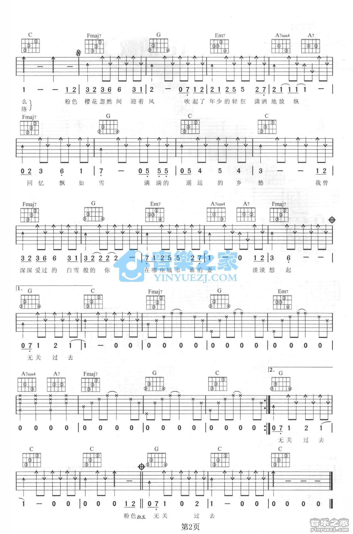 樱吹雪吉他谱,原版歌曲,简单C调弹唱教学,六线谱指弹简谱2张图