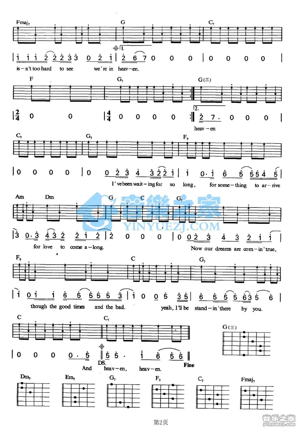 Heaven吉他谱,原版歌曲,简单C调弹唱教学,六线谱指弹简谱2张图