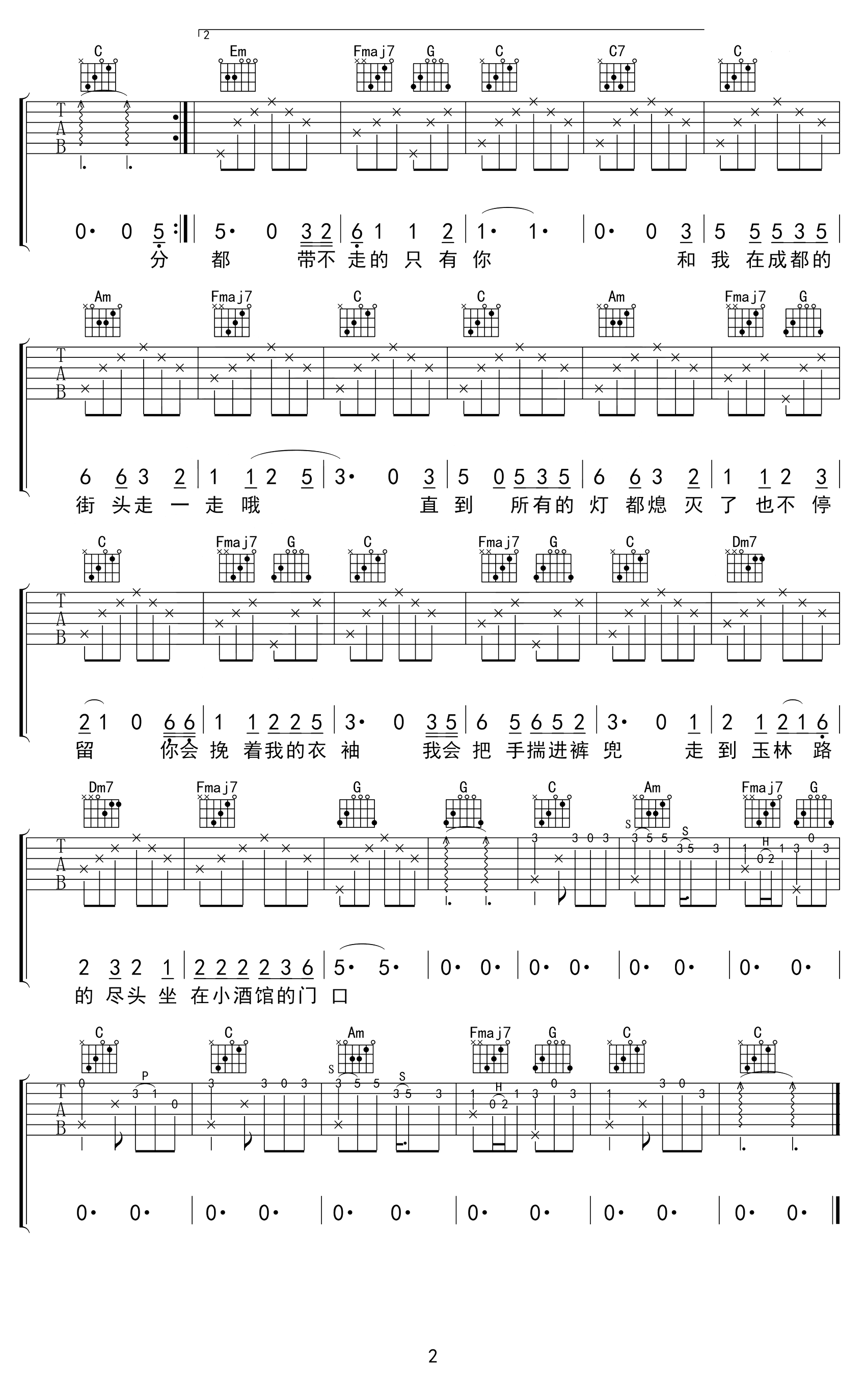 成都吉他谱,原版歌曲,简单C调弹唱教学,六线谱指弹简谱2张图