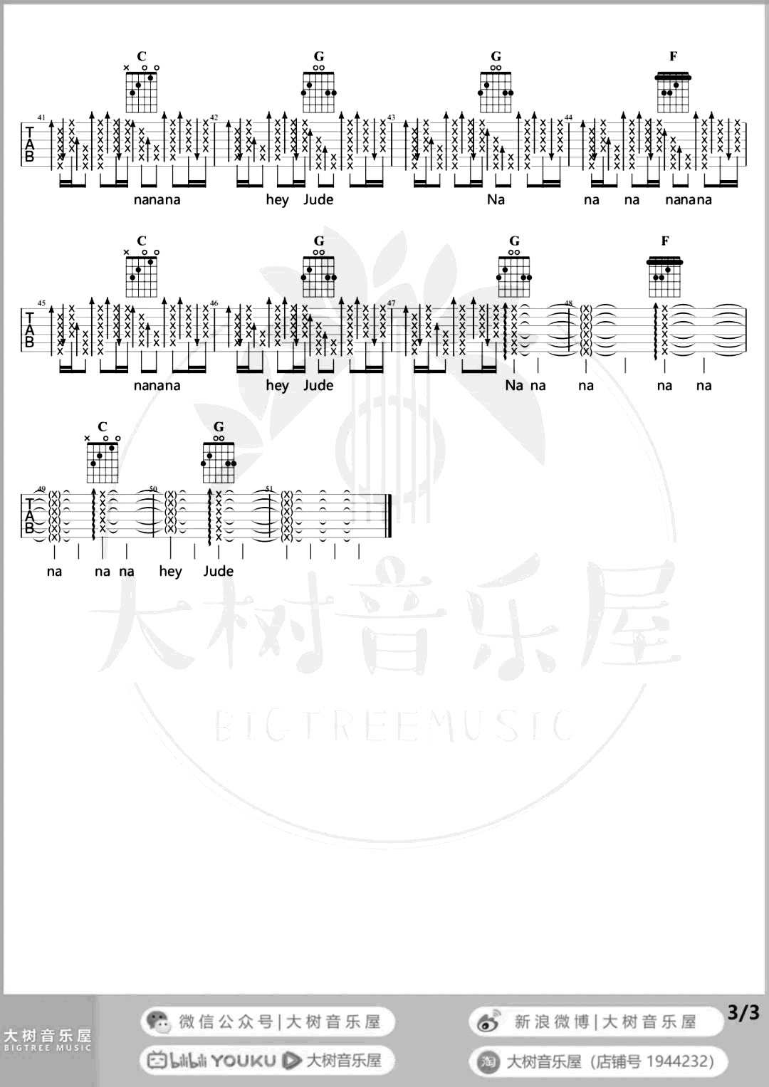 以上就是4/4节拍G调版的Hey Jude弹唱简谱完整内容,希望这个简单六线高清图片教学谱能帮到您,也希望您能收藏本站,这里每天源源不断更新各种简单入门曲谱。