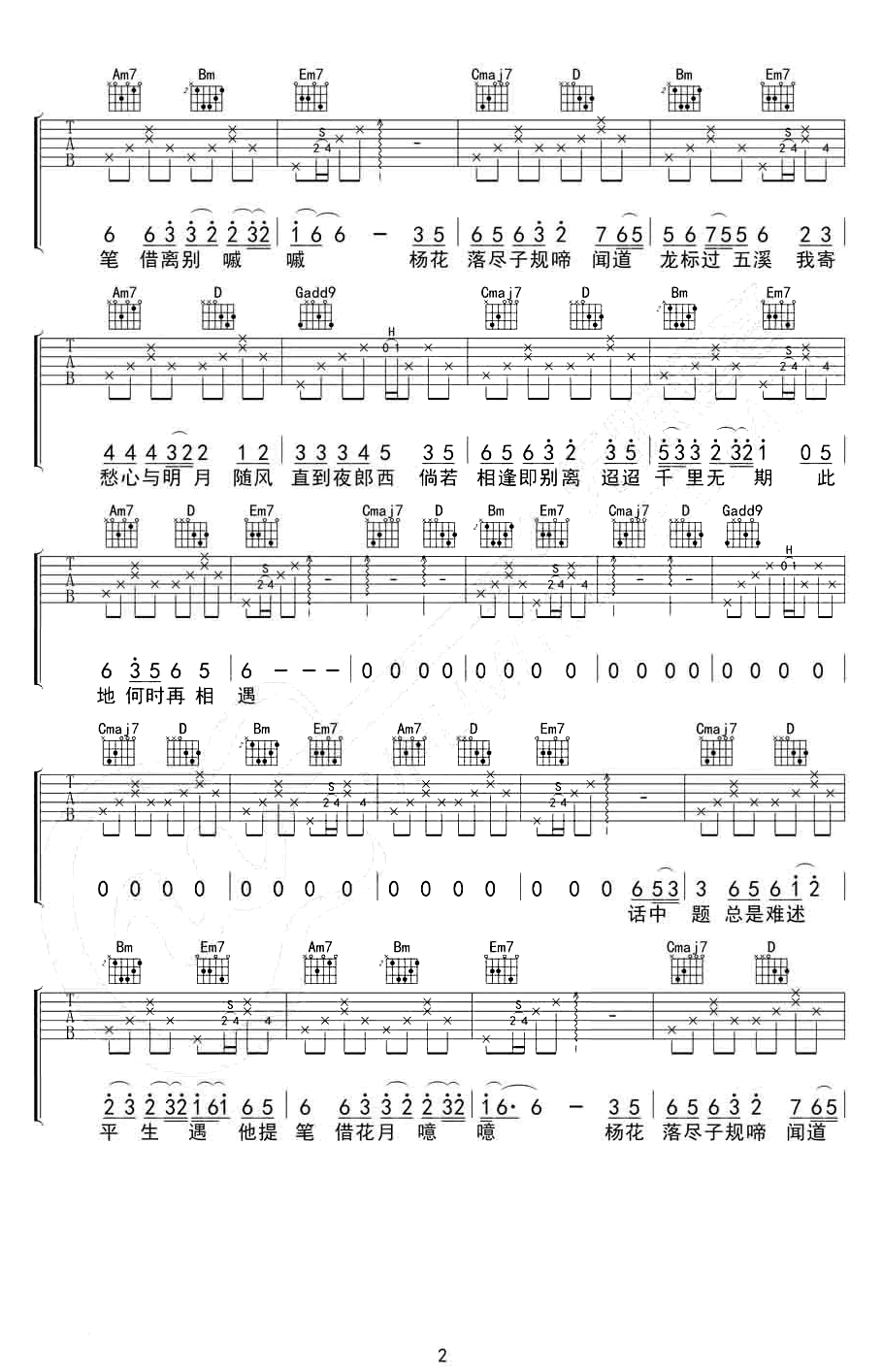 《杨花落尽子规啼吉他谱》_卢一帆_G调 图二G2er/黄诗扶-图二