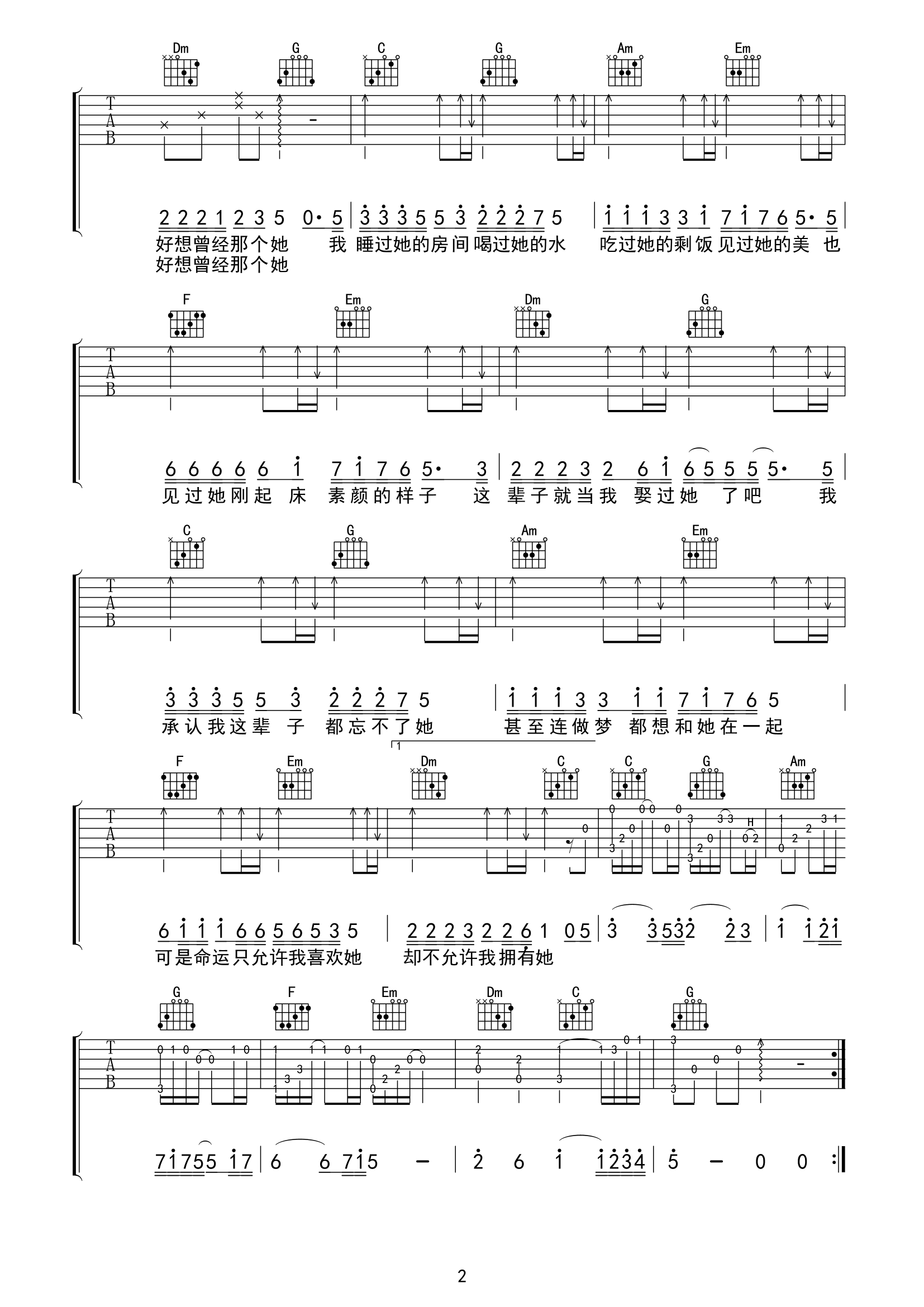 够爱吉他谱,取自演唱的歌曲是经典F调指弹编配的曲谱,非常好听的弹唱曲谱,下面3张高清曲谱由吉曲谱网为大家更新分享,有喜欢吉它的朋友欢迎关注!