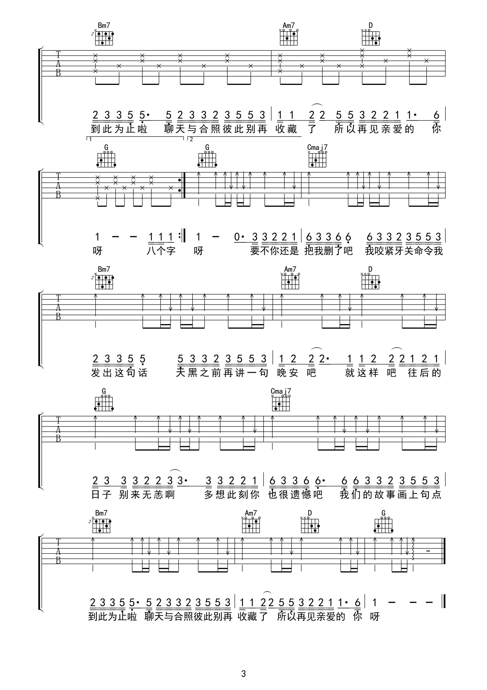 删了吧吉他谱,原版歌曲,简单G调弹唱教学,六线谱指弹简谱3张图