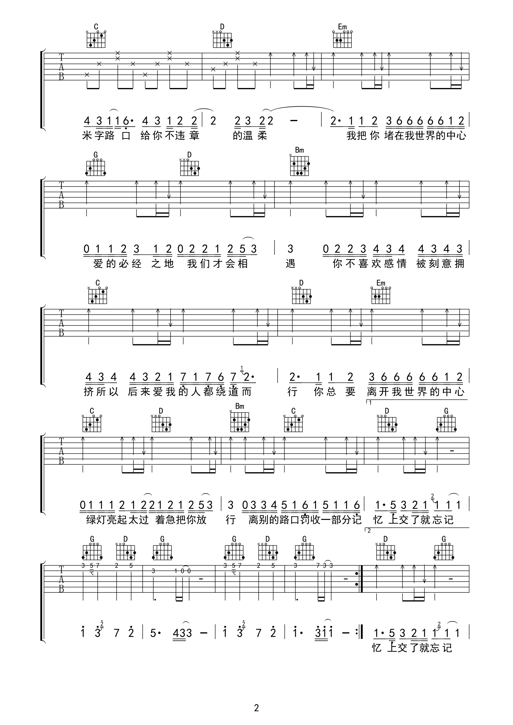《米字路口吉他谱》_徐秉龙_G调 图二