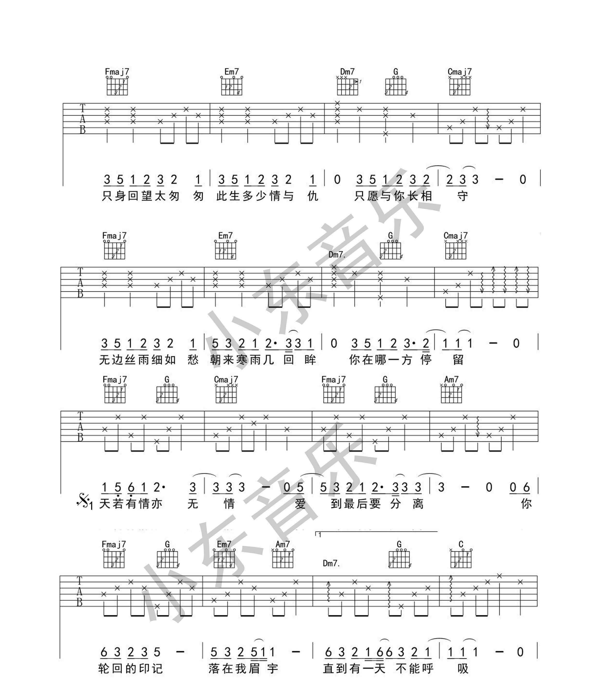 没有她世界依然在绽放吉他谱,取自演唱的歌曲是经典E调指弹编配的曲谱,非常好听的弹唱曲谱,下面5张高清曲谱由吉曲谱网为大家更新分享,有喜欢吉它的朋友欢迎关注!