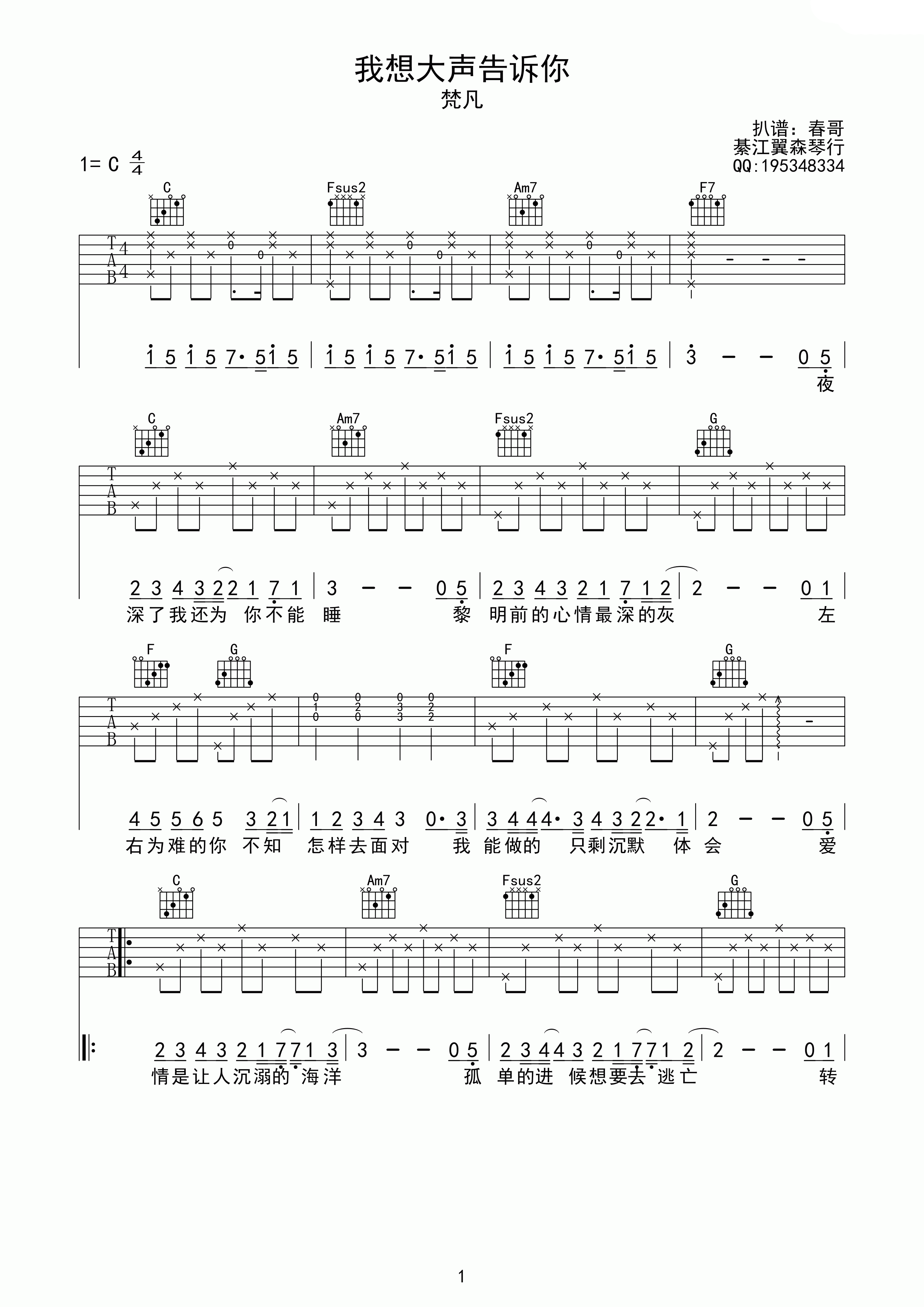 以上就是4/4节拍C调版的我想大声告诉你弹唱简谱,如果正是您所寻找的六线高清图片谱,希望能收藏本站,这里会完全免费且源源不断更新各种樊凡简单入门曲谱