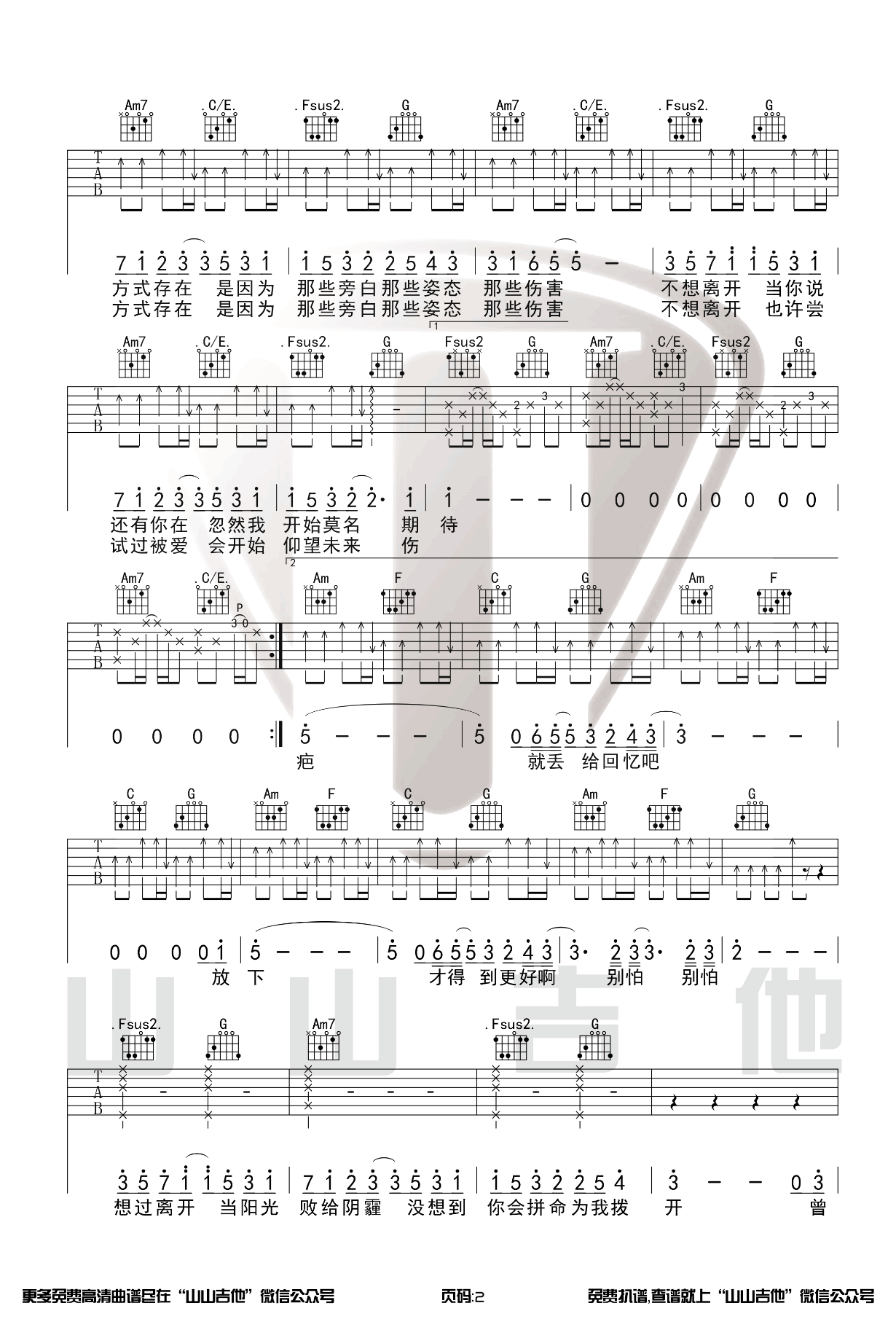 好想爱这个世界啊吉他,华晨宇歌曲,简单指弹教学简谱,山山吉他六线谱图片