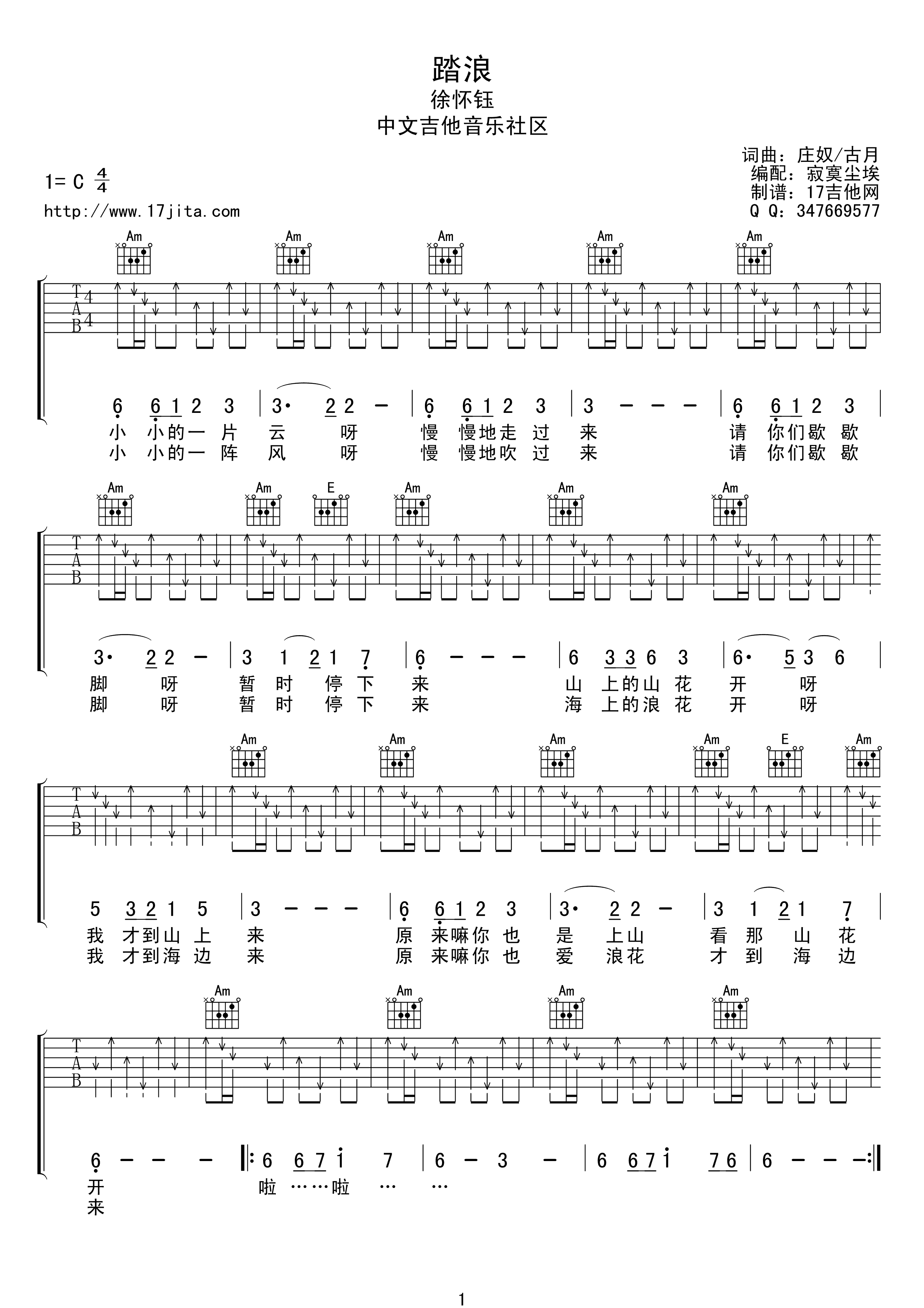 以上就是4/4节拍C调版的踏浪弹唱简谱,如果正是您所寻找的六线高清图片谱,希望能收藏本站,这里会完全免费且源源不断更新各种徐怀钰简单入门曲谱