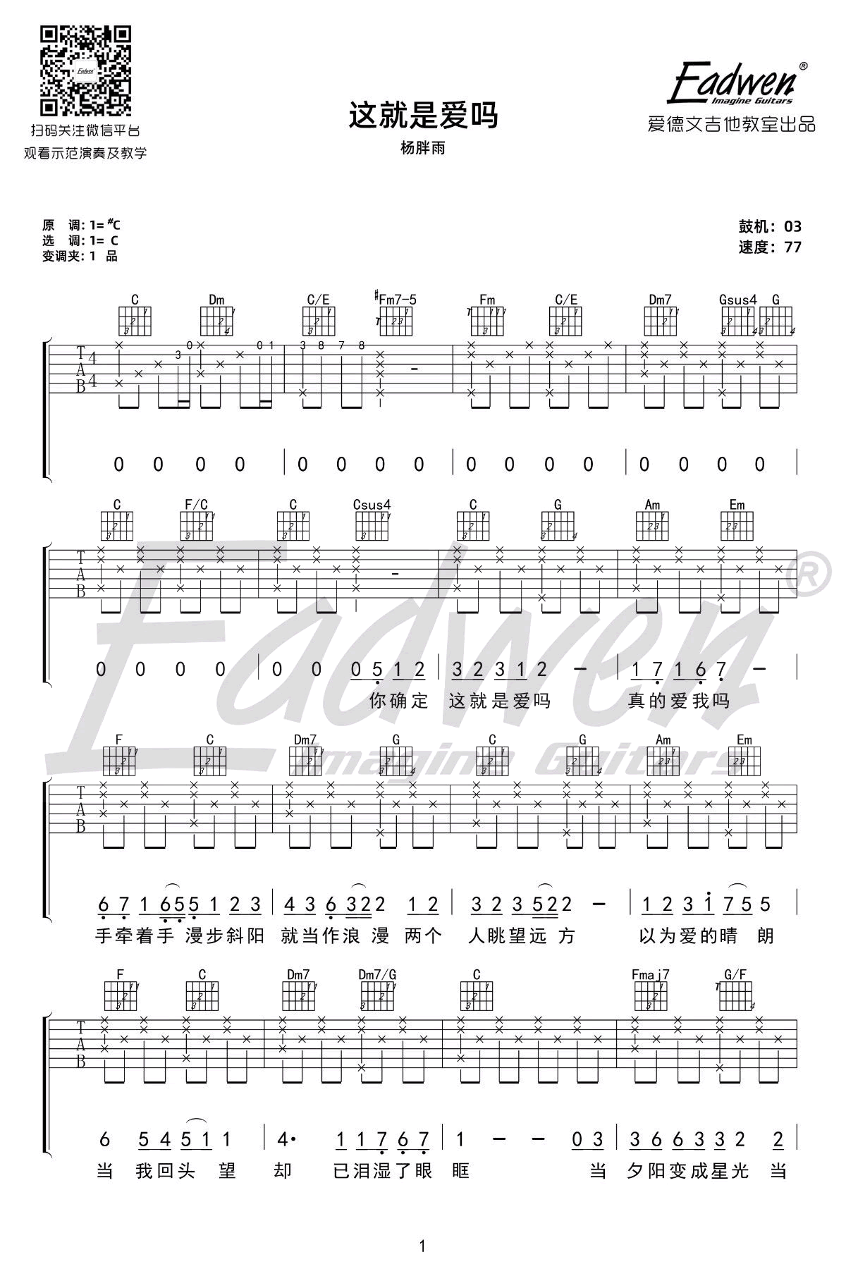 这就是爱吗吉他谱,取自演唱的歌曲是经典C调指弹编配的曲谱,非常好听的弹唱曲谱,下面3张高清曲谱由吉曲谱网为大家更新分享,有喜欢吉它的朋友欢迎关注!