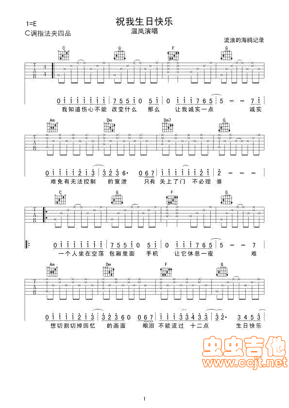 祝我生日快乐吉他谱,它是温岚演唱的歌曲,由虫虫吉他编配制谱,是一首经典歌曲编配的E调指弹编配的曲谱,