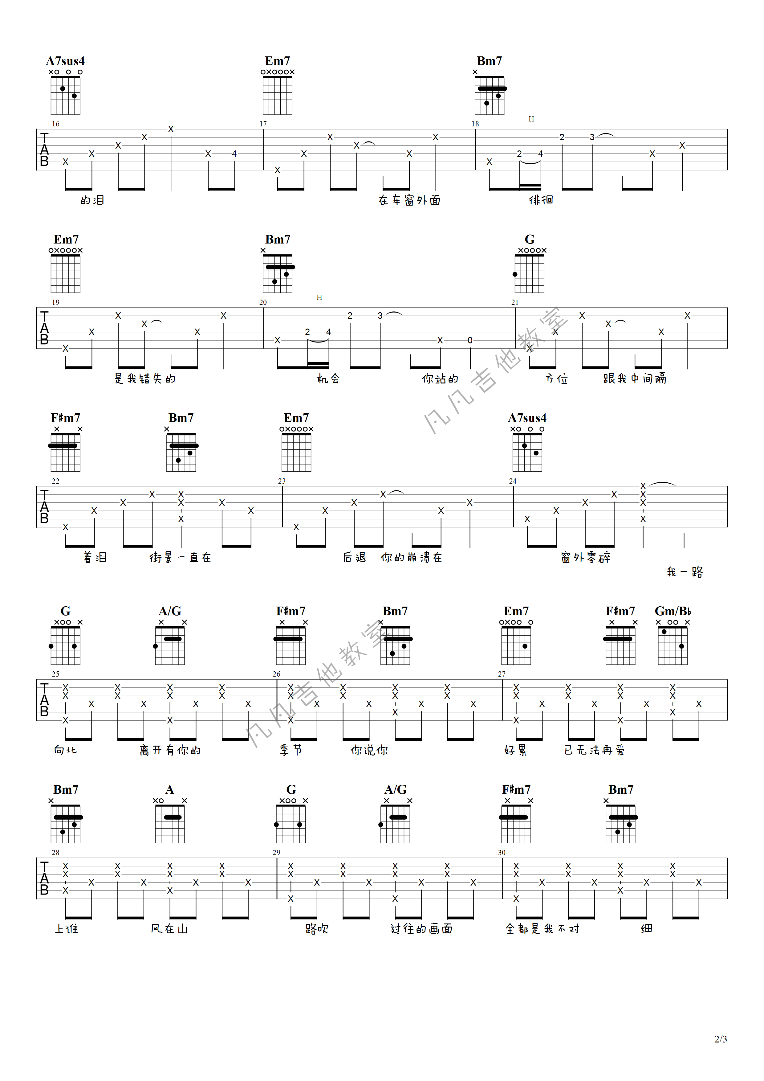 园游会吉他谱,原版周杰伦歌曲,简单原调弹唱教学,凡凡吉他教室版六线指弹简谱图