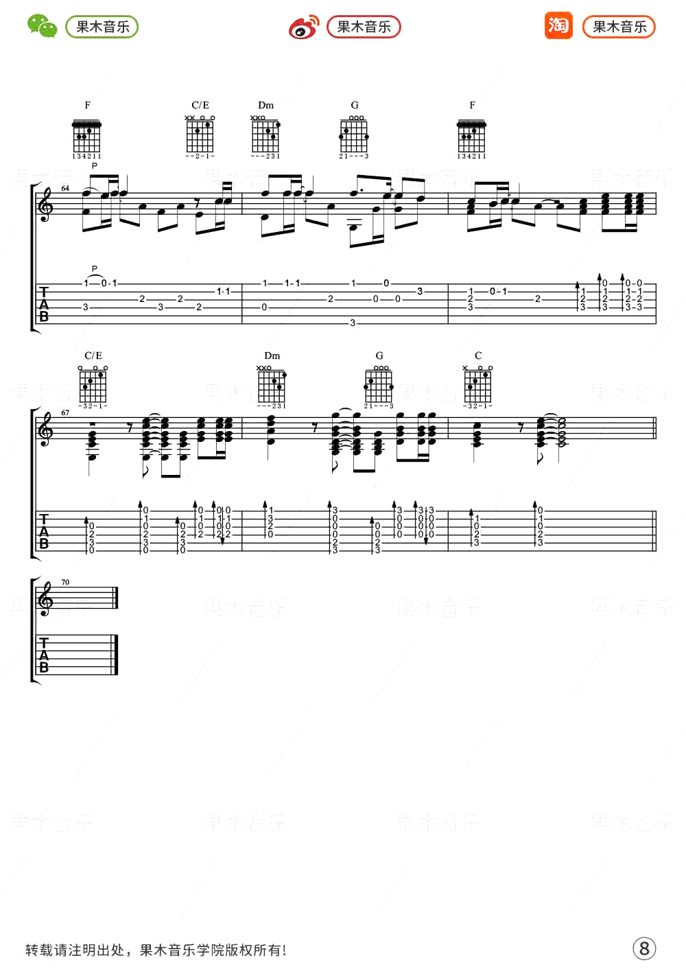《后来》指弹谱,刘若英经典歌曲改编,后来吉他独奏谱,带前奏尾奏完整版共八张图片谱,苏新程老师编配,果木音乐出品,附《后来》指弹吉他演奏视频,琴友们参照演示练习。整理分享。