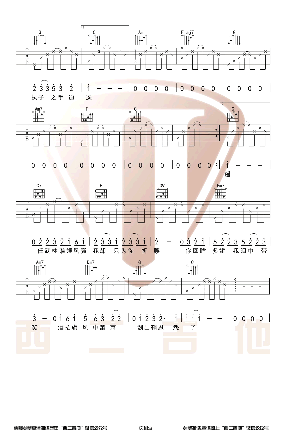红尘客栈吉他谱,取自演唱的歌曲是经典C调指弹编配的曲谱,非常好听的弹唱曲谱,下面3张高清曲谱由吉曲谱网为大家更新分享,有喜欢吉它的朋友欢迎关注!