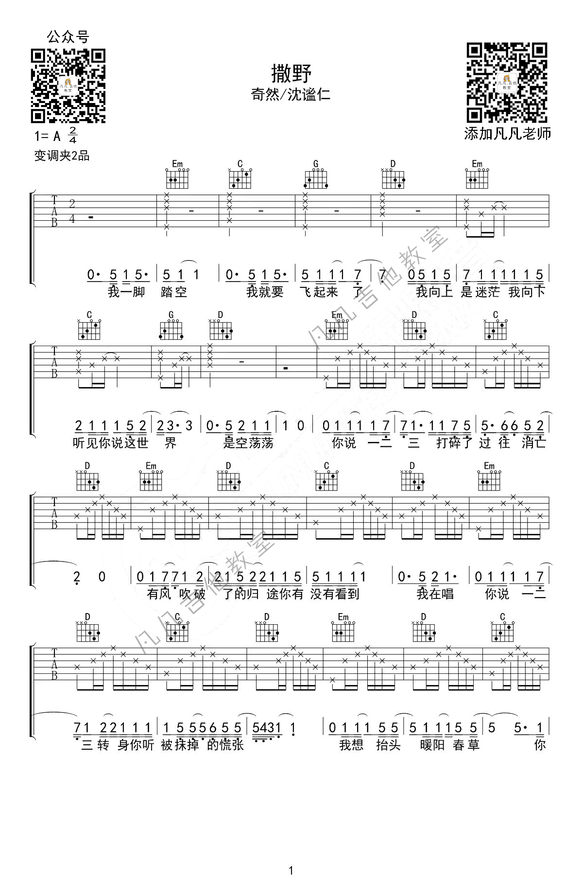 以上就是4/4节拍 A调版的撒野弹唱简谱,如果正是您所寻找的六线高清图片谱,希望能收藏本站,这里会完全免费且源源不断更新各种奇然简单入门曲谱