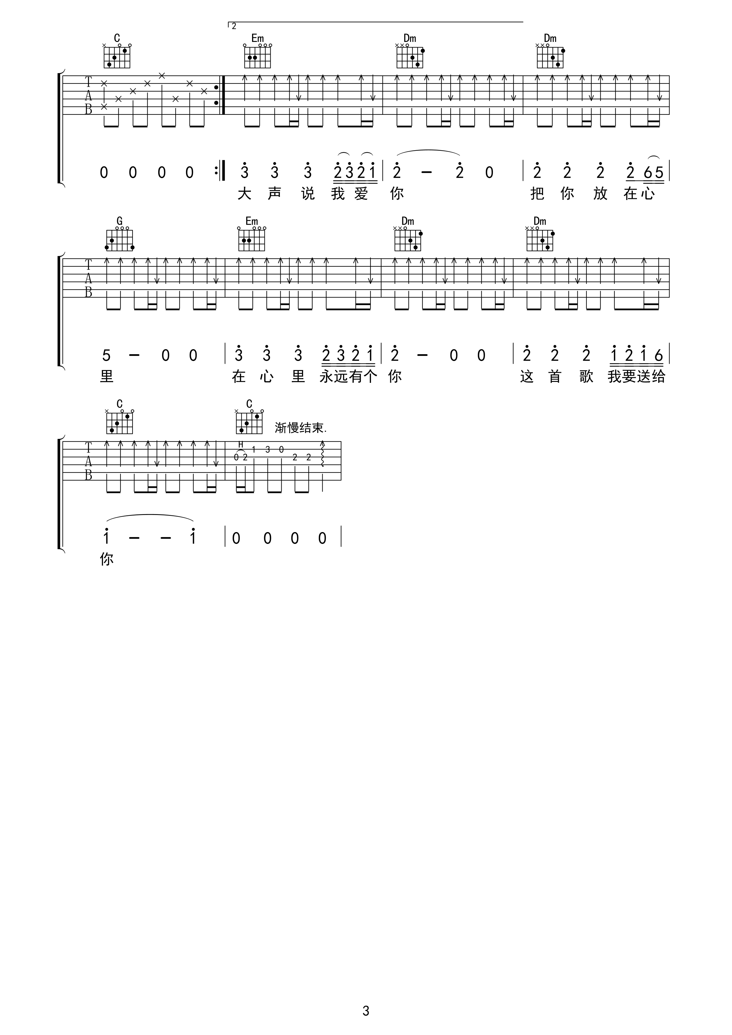 父亲吉他谱,取自演唱的歌曲是经典C调指弹编配的曲谱,非常好听的弹唱曲谱,下面3张高清曲谱由吉曲谱网为大家更新分享,有喜欢吉它的朋友欢迎关注!