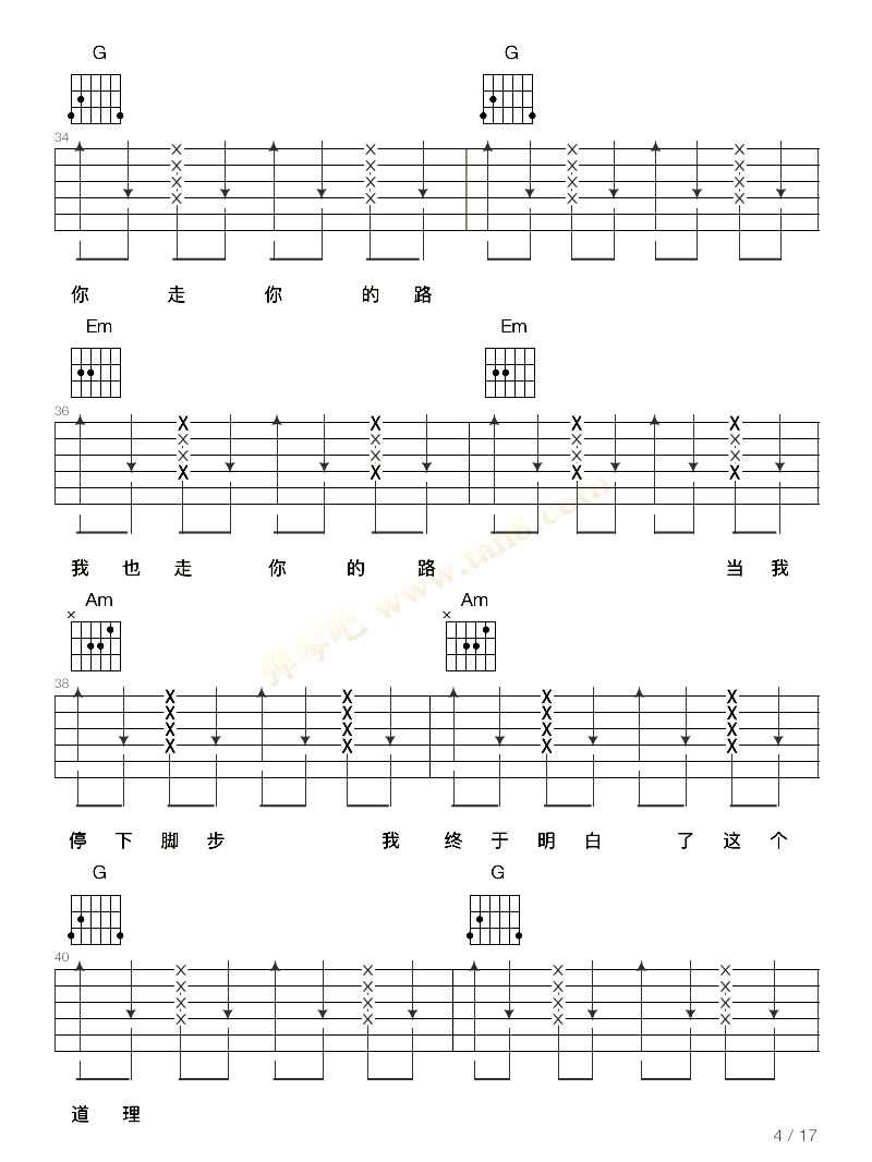 以上就是4/4节拍C调版的你走你的路弹唱简谱,如果正是您所寻找的六线高清图片谱,希望能收藏本站,这里会完全免费且源源不断更新各种汪峰简单入门曲谱