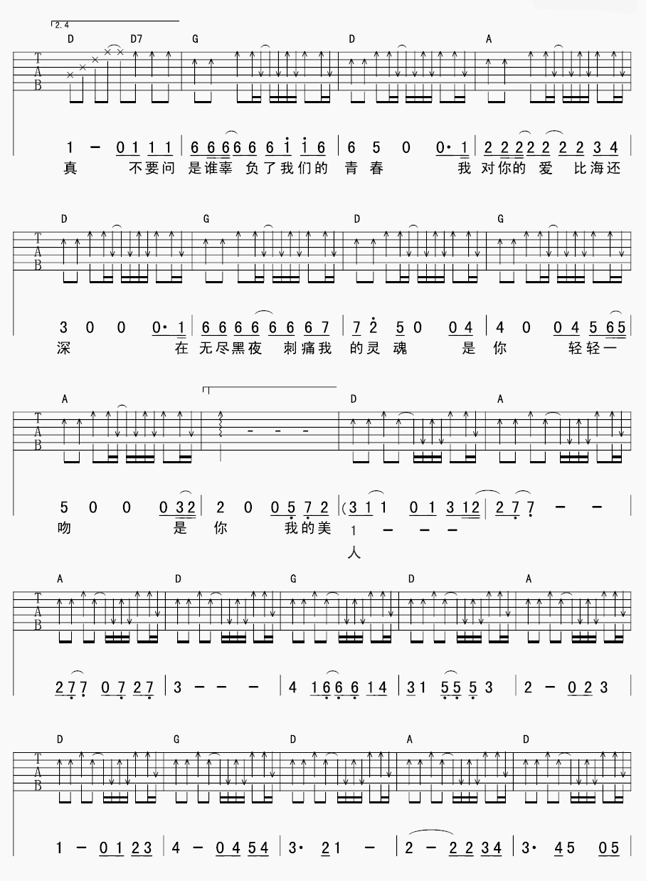 以上就是4/4节拍D调版的美人弹唱简谱,如果正是您所寻找的六线高清图片谱,希望能收藏本站,这里会完全免费且源源不断更新各种小安简单入门曲谱