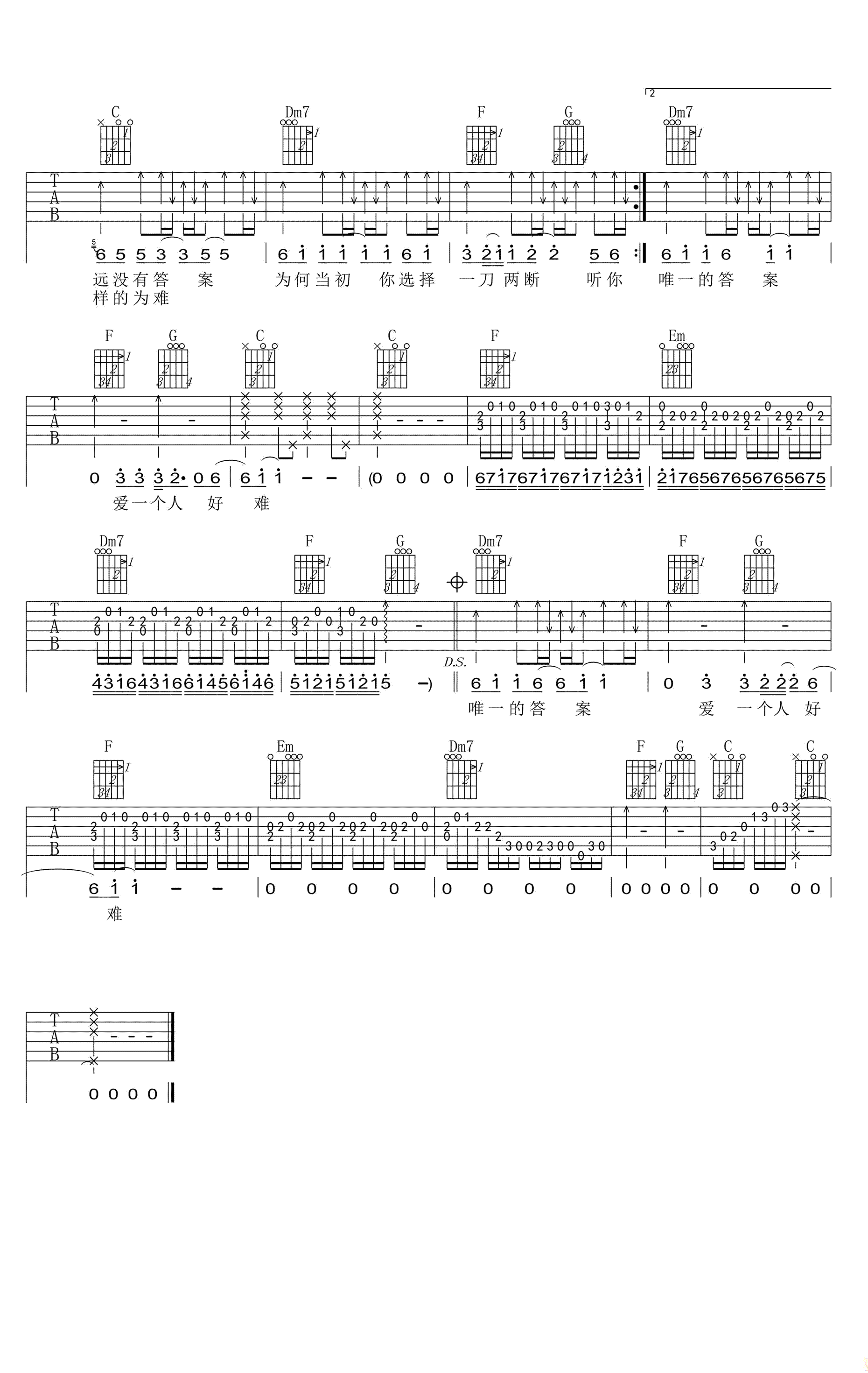 以上就是C调弹唱谱的爱一个人好难吉他谱,如果正是您所寻找的六线高清图片谱,希望能收藏本站,这里会源源不断更新各种季忠平的曲谱。