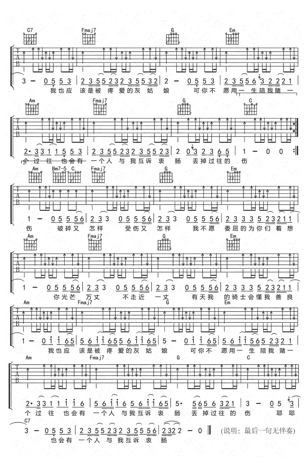 以上就是弹唱六线谱的雪凝《灰姑娘》吉他,如果正是您所寻找的六线高清图片谱,希望能收藏本站,这里会源源不断更新各种陈雪凝的曲谱。