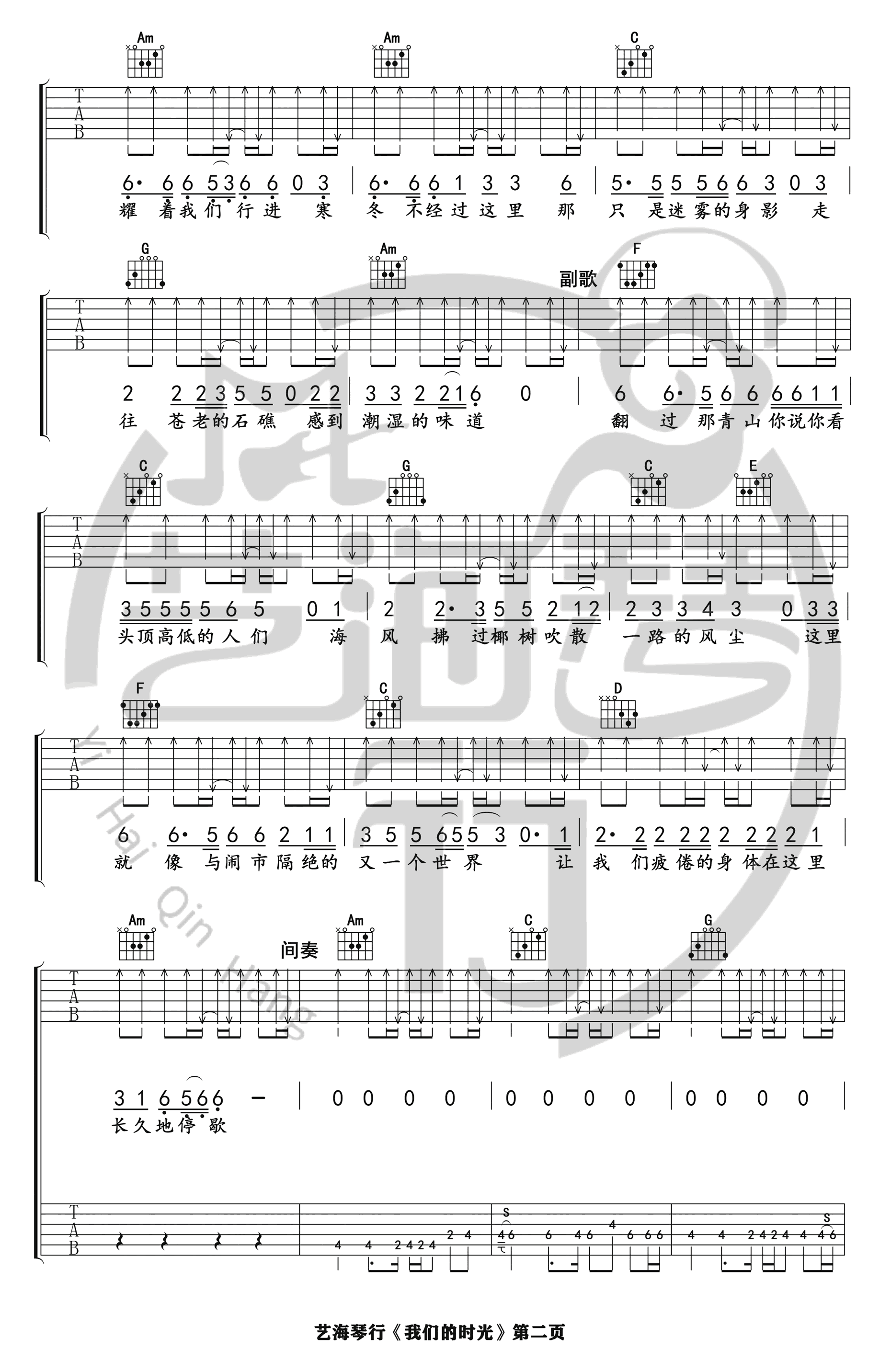 我们的时光吉他谱,赵雷歌曲,简单指弹教学简谱,艺海琴行六线谱图片