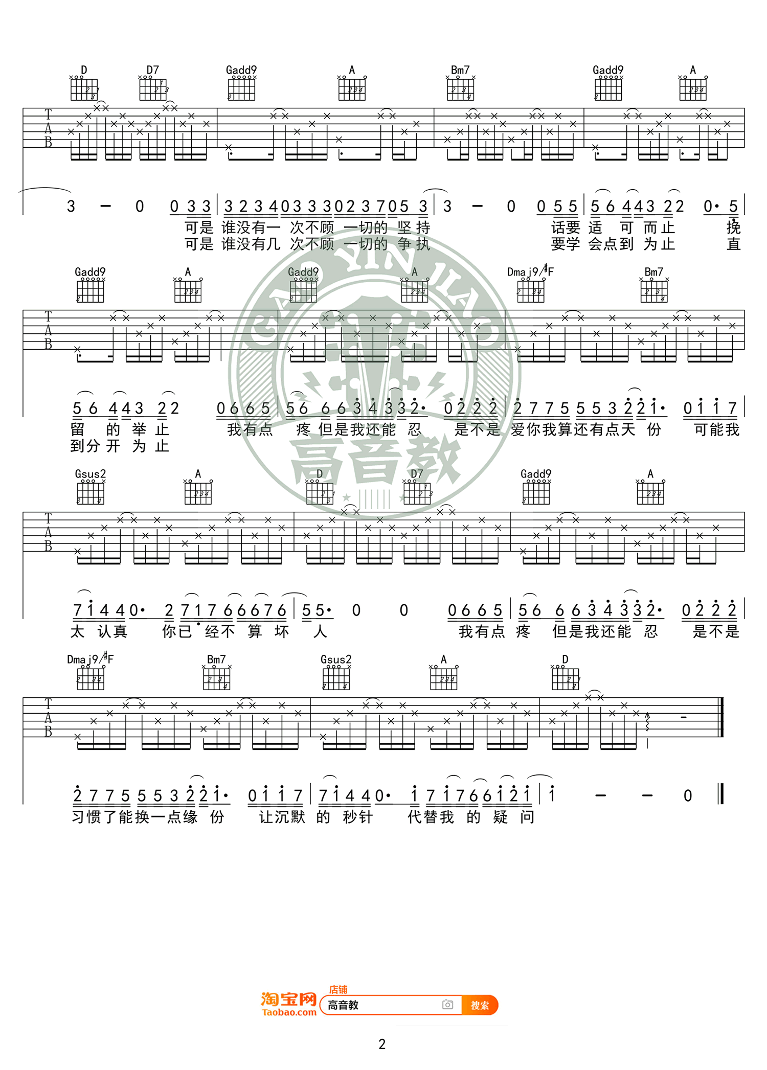 天份吉他谱,薛之谦歌曲,简单指弹教学简谱,高音教六线谱图片