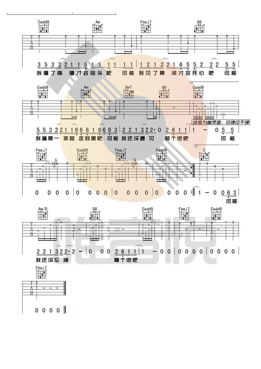 可能否吉他谱,它是木小雅演唱的歌曲,由唯音悦编配制谱,是一首经典歌曲编配的C调指弹编配的曲谱,