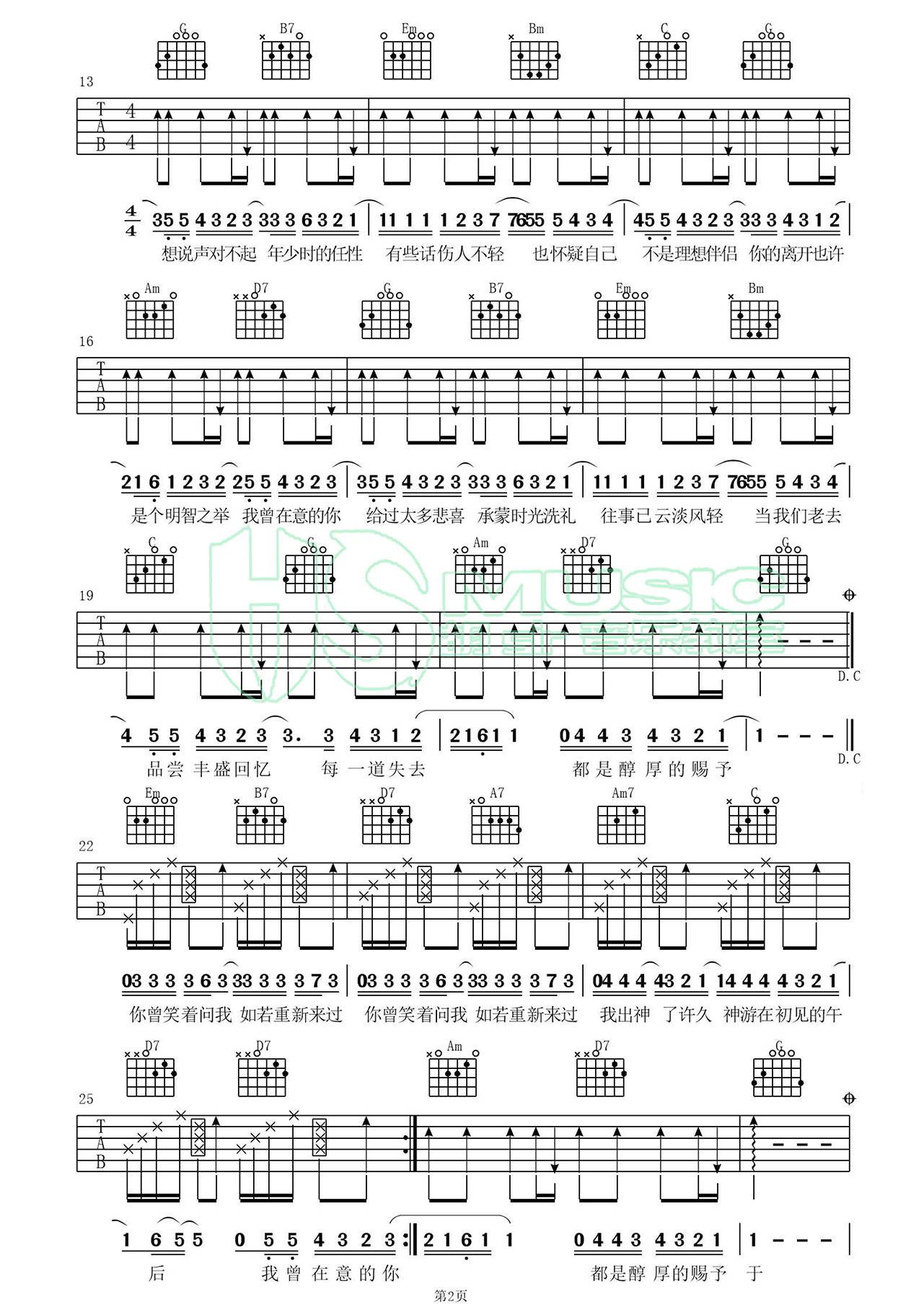 歌曲选自《寻宝游戏》专辑非常好听的弹唱曲谱,下面2张高清曲谱由吉它简谱网为大家更新分享,有喜欢吉它的朋友欢迎关注!