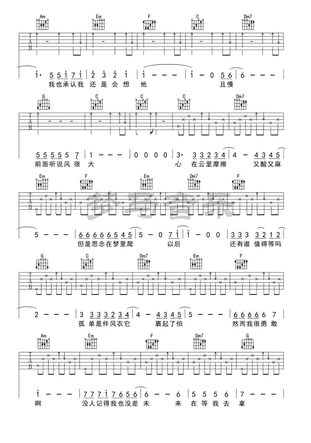 以上就是4/4节拍C调版的飞云之下弹唱简谱,如果正是您所寻找的六线高清图片谱,希望能收藏本站,这里会完全免费且源源不断更新各种林俊杰简单入门曲谱
