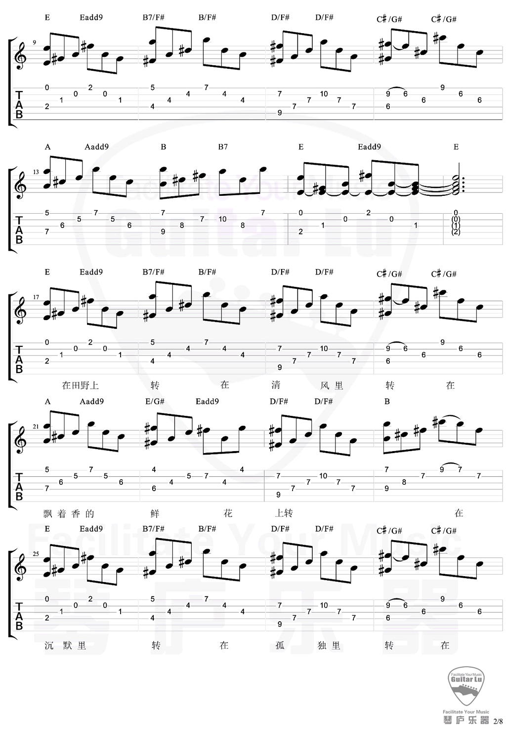 靠近吉他谱,取自演唱的歌曲是经典A调指弹编配的曲谱,非常好听的弹唱曲谱,下面2张高清曲谱由吉曲谱网为大家更新分享,有喜欢吉它的朋友欢迎关注!