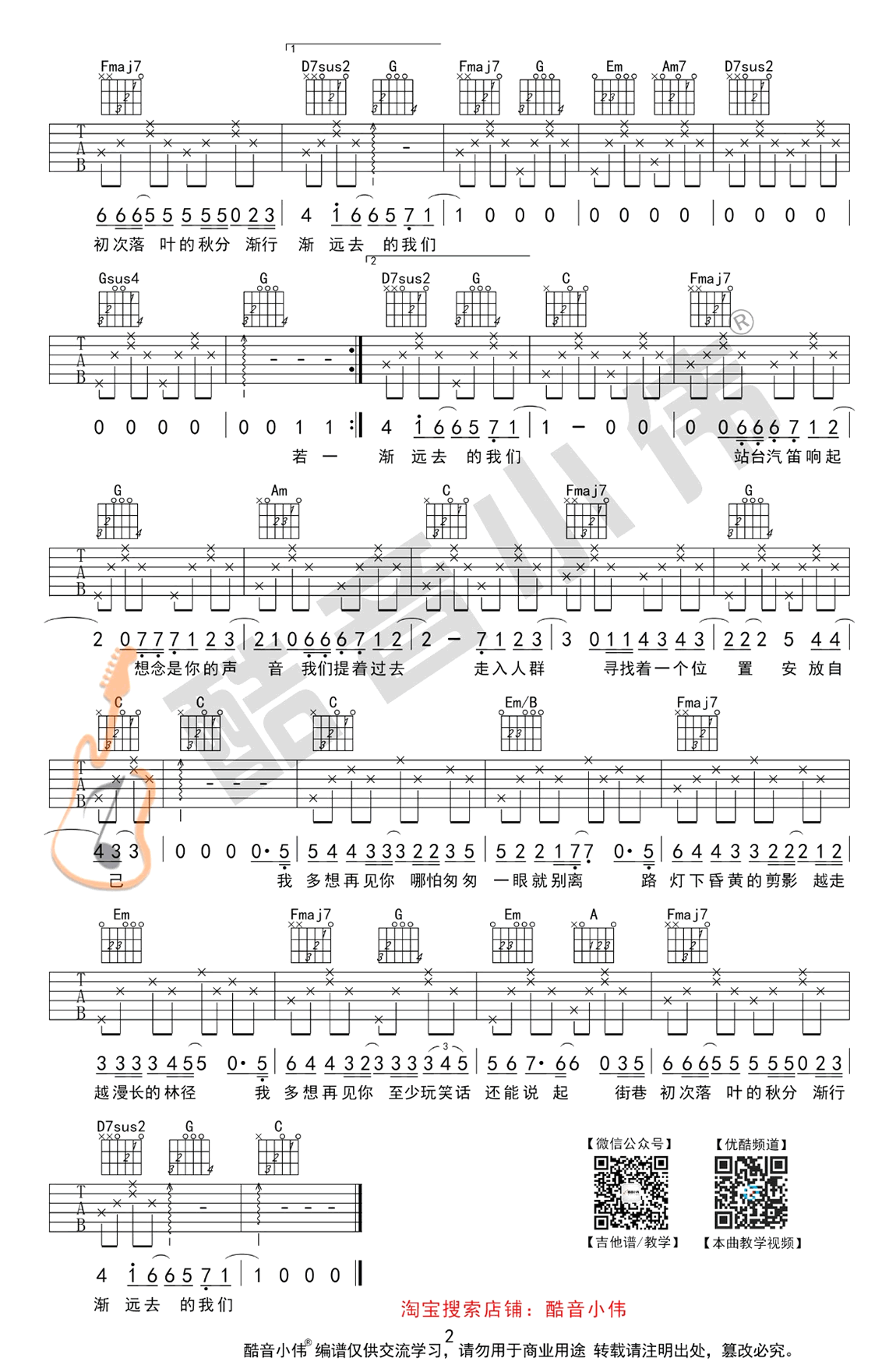 《云烟成雨》这首歌,简单版编配,房东的猫一首清新民谣歌曲,《云烟成雨》六线谱,高清弹唱图片谱,原调bB,选用C调,男生变调夹推荐2-6品,女生变调夹不夹。是由酷音小伟的编配,。