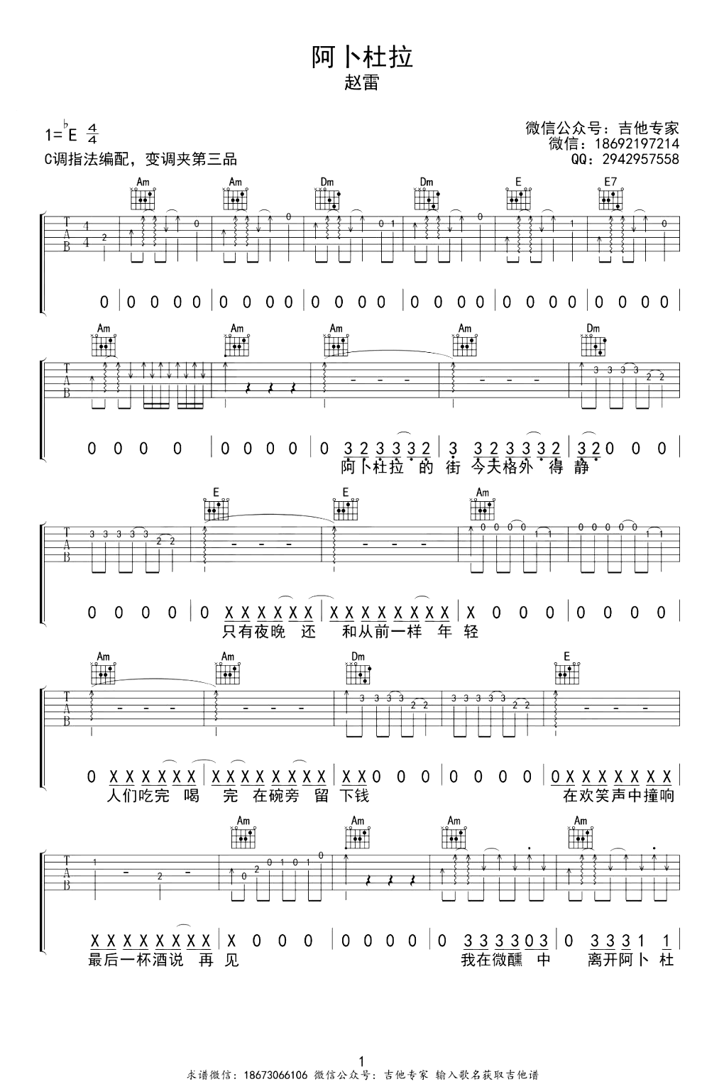 阿卜杜拉吉他谱,它是赵雷演唱的歌曲,由吉他专家制谱,是一首经典歌曲编配的C调吉他谱,演唱时可夹三品,原调降E调本谱采用C调赵雷新非常好听的弹唱曲谱,下面四张完整版高清曲谱由吉他谱大全为大家更新分享,有喜欢吉它的朋友欢迎关注!