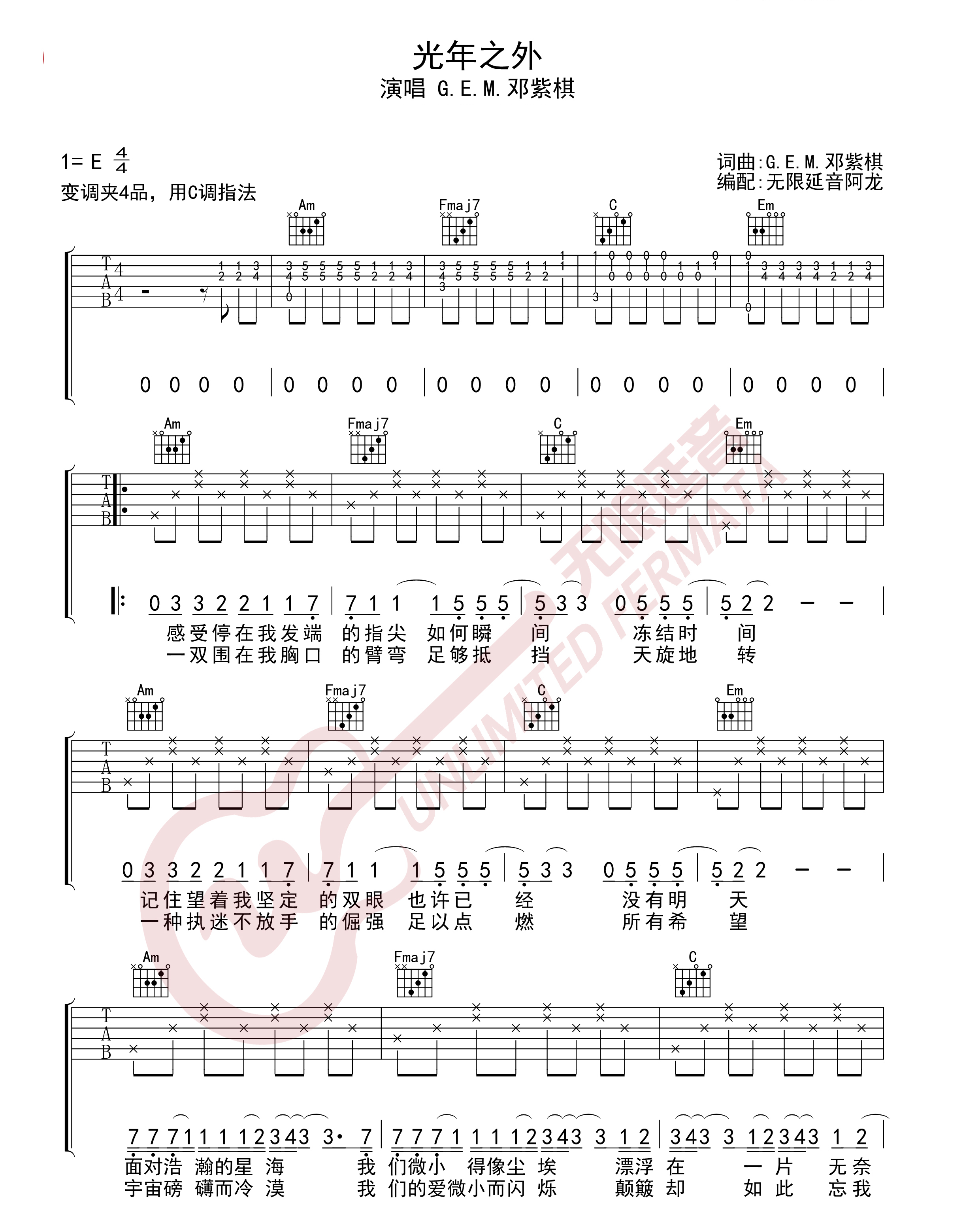 不露声色吉他谱,它是Jam演唱的歌曲,由音艺吉他编配制谱,是一首经典歌曲编配的C调指弹编配的曲谱,