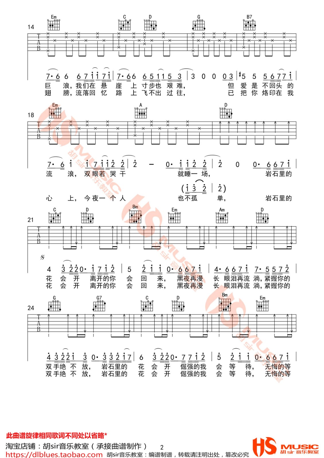 岩石里的花吉他谱,它是邓紫棋演唱的歌曲,由胡Sir音乐教室编配制谱,是一首经典歌曲编配的G调指弹编配的曲谱,