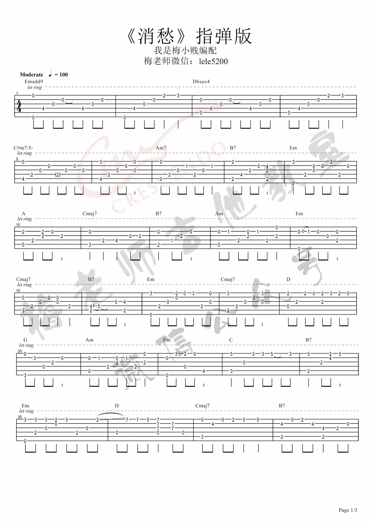 以上就是4/4节拍"t版的消愁指弹谱 附指弹视频_梅老师编配_毛不易消愁弹唱简谱,如果正是您所寻找的六线高清图片谱,希望能收藏本站,这里会完全免费且源源不断更新各种毛不易简单入门曲谱