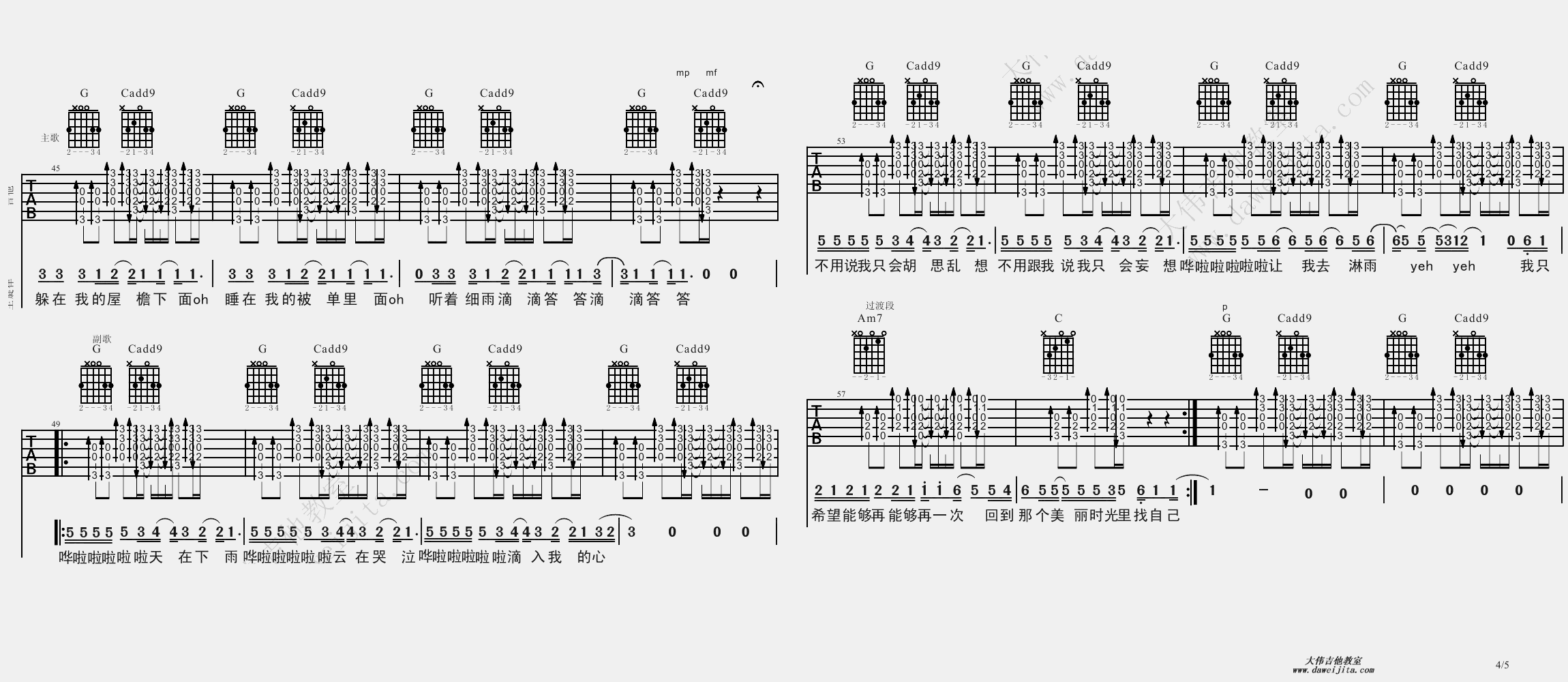 歌曲选自《》专辑非常好听的弹唱曲谱,原调曲调下面4张 5张高清曲谱由吉它简谱网为大家更新分享,有喜欢吉它的朋友欢迎关注!