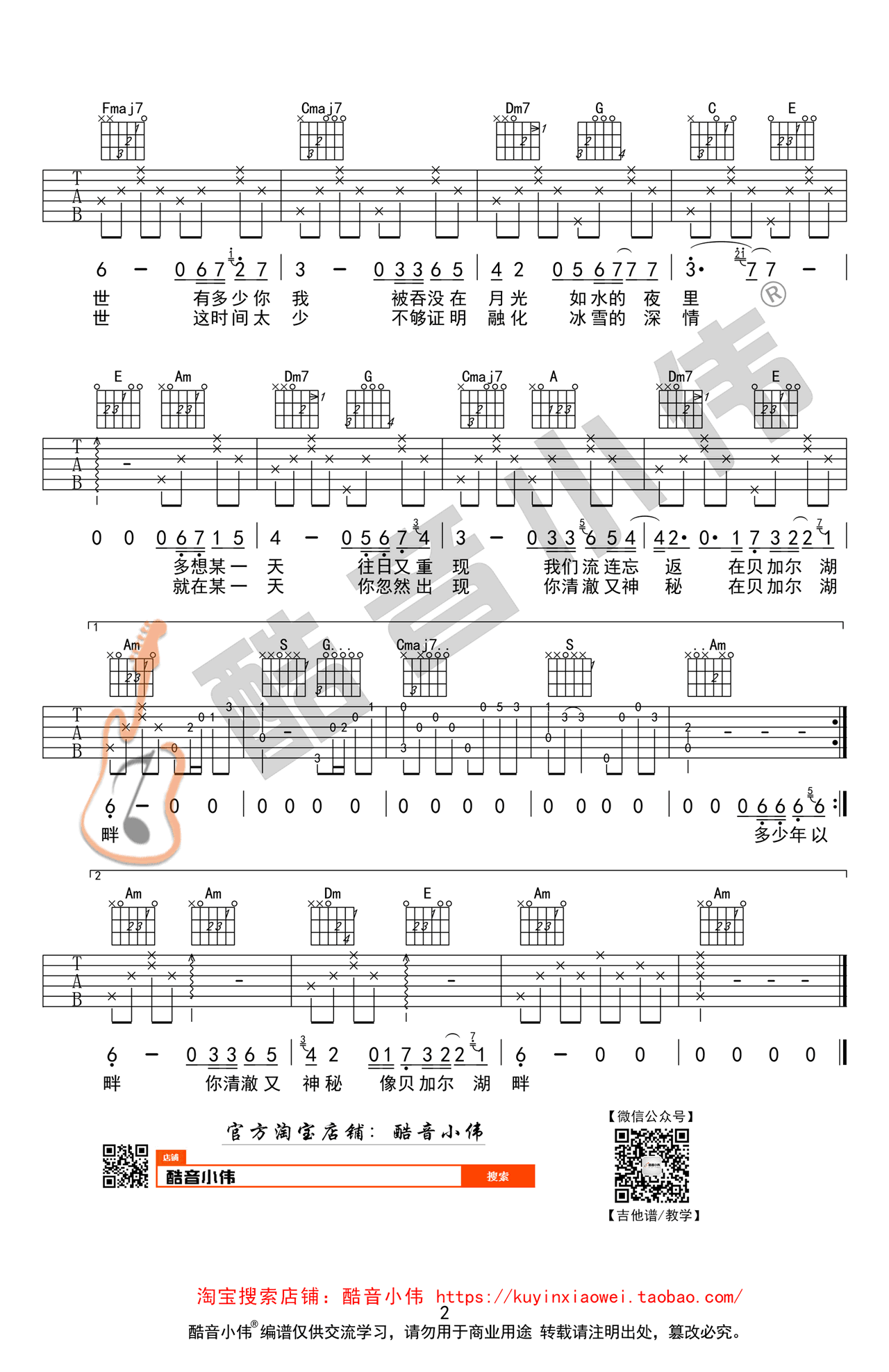贝加尔湖畔吉他谱,原版歌曲,简单未知调弹唱教学,六线谱指弹简谱2张图