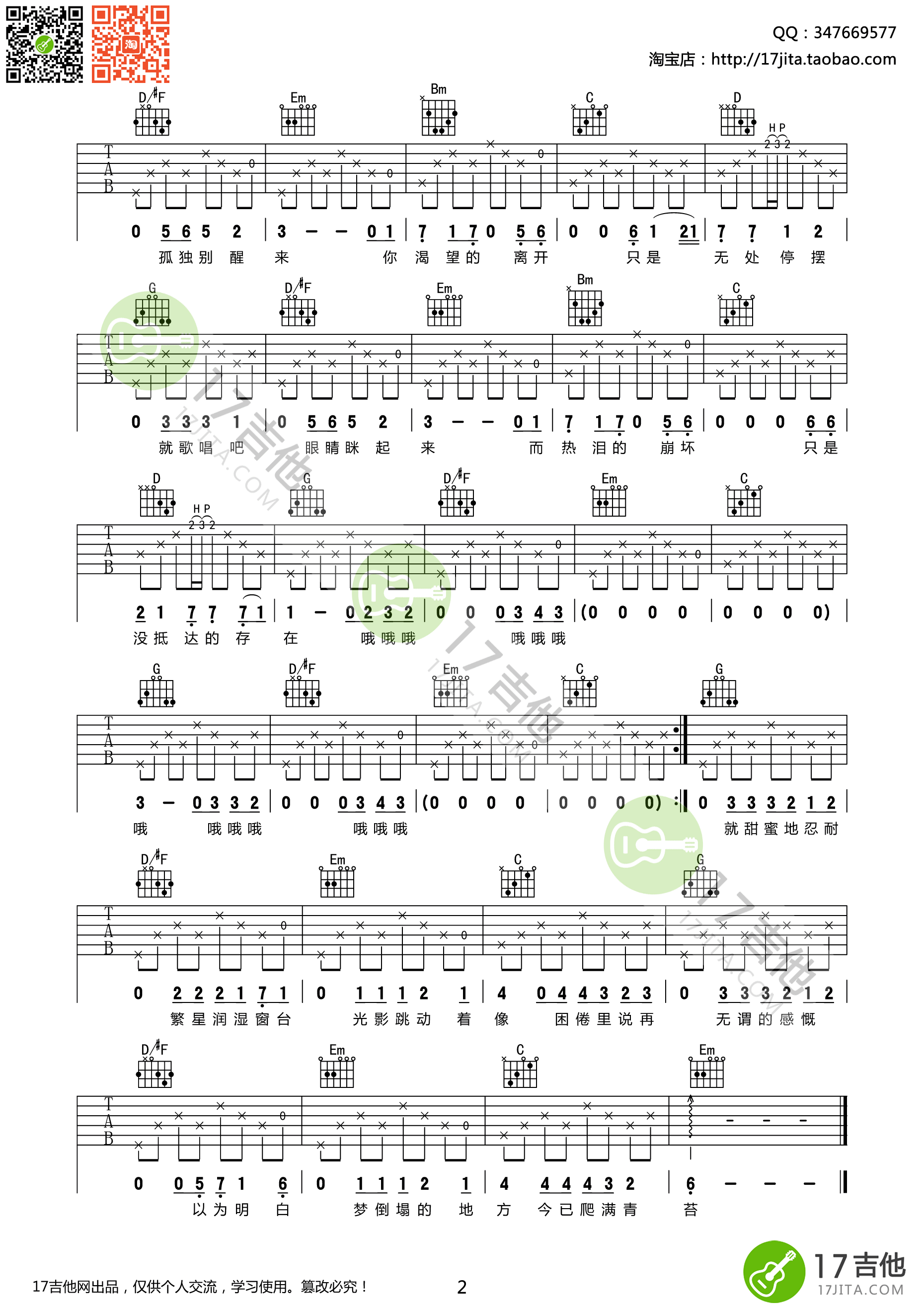 鸿宇《理想三旬》吉,唐映枫陈鸿歌曲,简单指弹教学简谱,17吉他六线谱图片