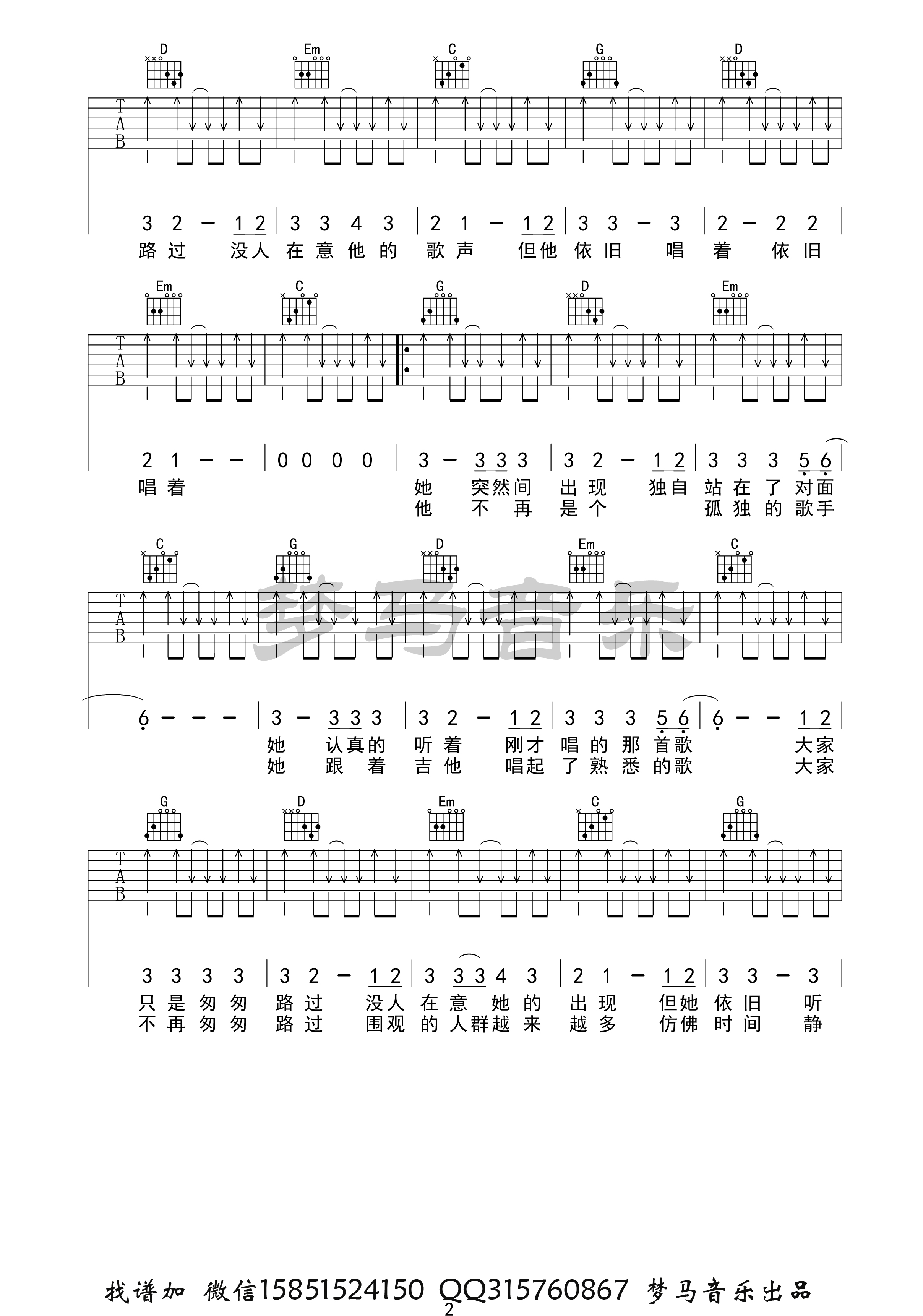 《步行街的吉他手吉他谱》_张闯_G调 图二