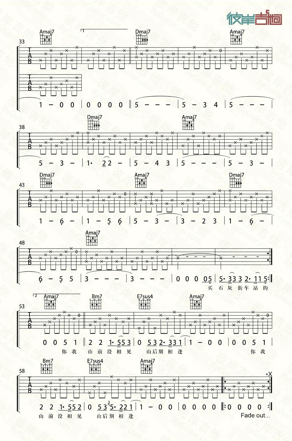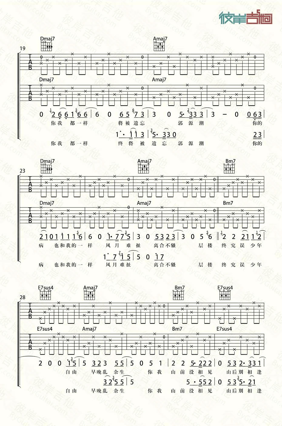 宋冬野《郭源潮》吉他,宋冬野歌曲,简单指弹教学简谱,彼岸吉他六线谱图片