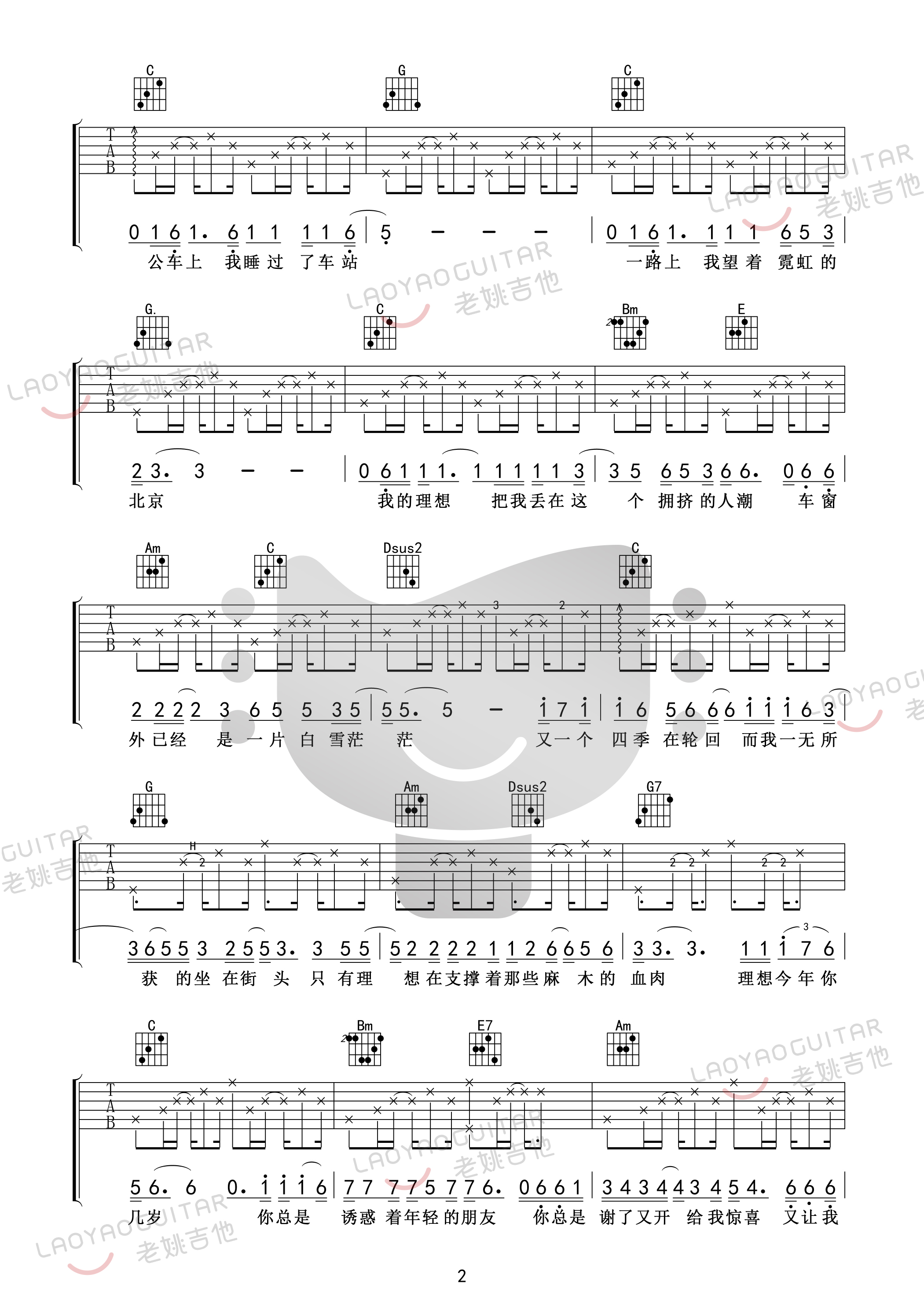 理想吉他谱,原版赵雷歌曲,简单G调弹唱教学,六线谱指弹简谱5张图