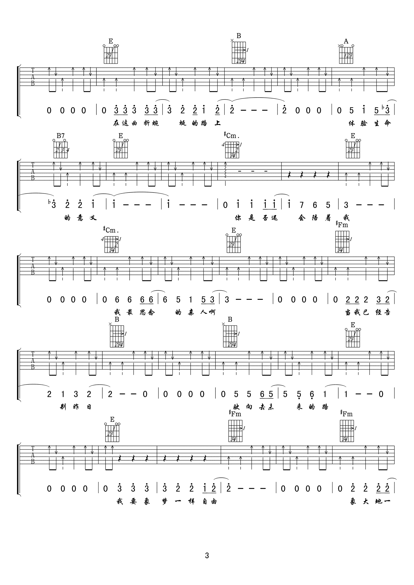 像梦一样自由这首歌,汪峰的一首代表作品,像梦一样自由六线谱,原调E,完整版共六张图片高清简谱。小叶歌吉他编配出品,上传更新。